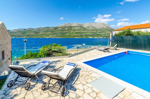 On the beautiful island of Korčula lies the exclusive seafront Villa Mystery. Located directly by the sea, with only a few steps separating it from the water, this villa is the perfect place for anyone whose vacation is not complete without a stunning panoramic sea view, for those who seek luxury and leisure opportunities. Villa Mystery is a renovated stone house, immersed in the crystal Adriatic sea, creating a fantastic five-star fairy tale hermitage that will make your holiday extra special and one to remember for all the right reasons. They say first impressions are everything; in which case Villa Mystery won’t disappoint. It is just a few minutes walk from the center of Korcula Town, and it’s everything you’d hope for in a luxury island retreat. Villa Mystery extends over two floors spread over a 700 m² estate, and it has 246 m² of living space. Villa is set on a large, completely enclosed garden with a private pool, and an outdoor Jacuzzi and is located on the seafront of the island. From the villa, you can literally walk directly into the sea. Upon coming to the property, firstly you will notice a beautiful garden, Jacuzzi and swimming pool - perfect for a refreshing swim during the hot summer months. The pool offers fantastic views of the sea and mountains that you will remember forever. The garden offers enough space for everyone to find their own favourite spot. Those who like to dine al fresco can prepare gourmet dishes on the outdoor BBQ and spend time with family and friends under the covered outdoor dining area, while the kids can enjoy the trampoline and the swings. Besides the stunning exterior, the villa has a marvellous, tastefully decorated interior that offers more than comfort for its guests. Villa Mystery provides accommodation for 8 guests in 4 beautiful and comfortable bedrooms, each with its own en-suite bathroom. When entering the house through the terrace doors, you will reach the ground floor of the luxury Villa Mystery. Here, you will find a cozy and comfortable living and dining area with a modern and fully equipped kitchen. Nowadays, a busy lifestyle makes every moment of leisure time very precious – that's why this villa provides all the features you need to relax and escape from the pressures of everyday life. On this level, there is also a fitness room with fitness equipment and a billiard table, as well as one of the bathrooms. On the upper floor of this fully air-conditioned luxury villa, 4 bedrooms are located. Each bedroom has a TV and an en-suite bathroom with a shower. There is also a mooring for smaller boats and 4 private parking spaces. The excellent location of the villa guarantees its guests complete privacy, while there are many beautiful beaches and fun local amenities within easy reach.