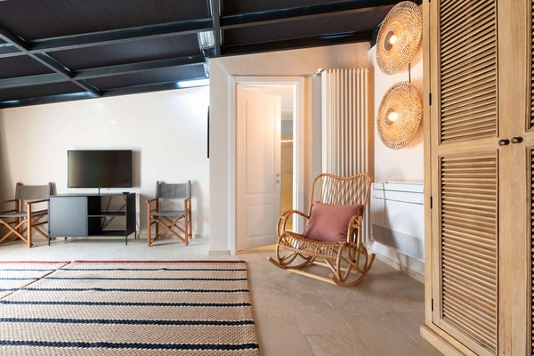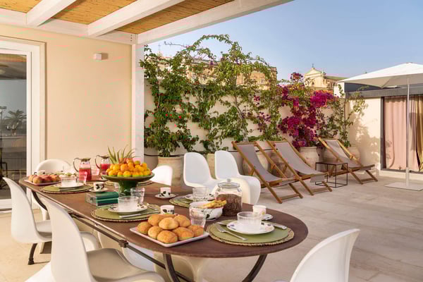 Aurispa is a luxury apartment with a terrace right in the heart of Noto’s historic centre, the capital of Sicilian baroque listed on the UNESCO world heritage list. Located on the second and third floors of a prestigious building with a lift, this exclusive apartment features a large terrace with a plunge pool offering fabulous views across the old town rooftops. Its central location allows guests to easily reach on foot Corso Vittorio Emanuele and Via Nicolaci and to immerse themselves in the magical atmosphere of this marvellous town. The property prides itself on its beautifully planned terrace furnished for use all through the day and in the evening and for al fresco dining. The cozy rooms, decorated with great care, are well equipped with heating and air conditioning (in each room), wi-fi, five TVs, a satellite receiver, a washing machine, dryer, two dishwashers, oven, microwave and a small cellar. The second floor, which is accessible by lift, includes a large living room, a guest bathroom, two bedrooms with en-suite showers and a master bedroom with a king-size bed, a walk-in closet and an en-suite tub. On the upper floor are a well-equipped kitchen and the fourth bedroom with an en-suite shower. Aurispa is a convenient starting point from which to explore Syracuse, Ragusa-Ibla, Modica and Scicli. A short drive from the property are also Noto Marina, Calamosche and Vendicari, San Lorenzo, Marzamemi and Portopalo di Capo Passero with their beautiful sandy beaches. CIN: IT089013C2Y4WK3C6U