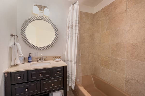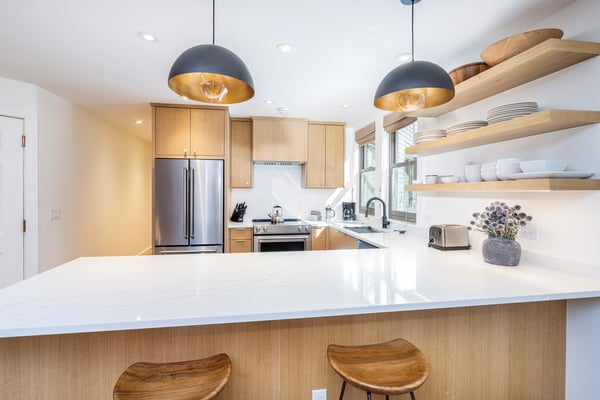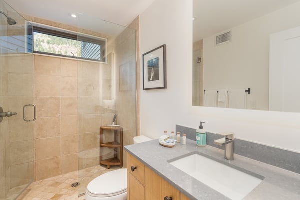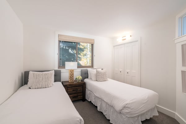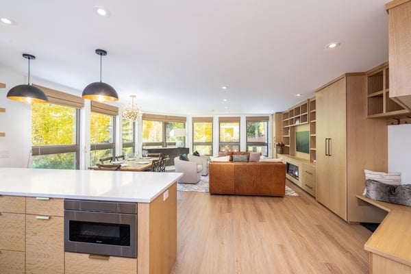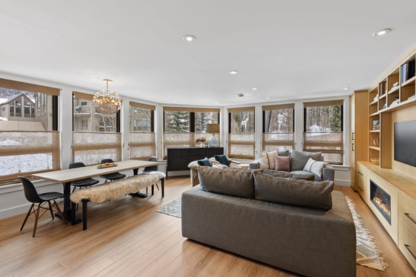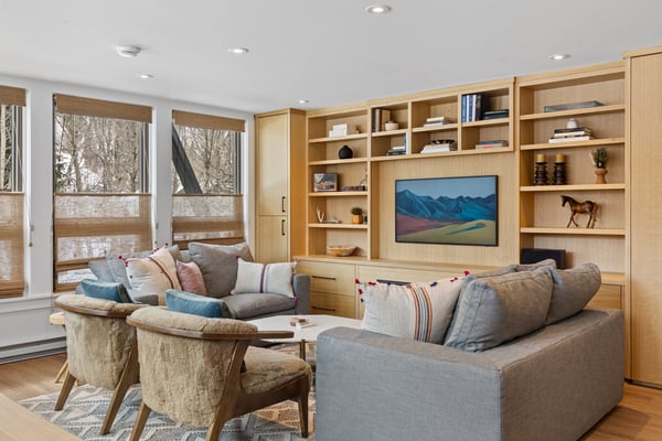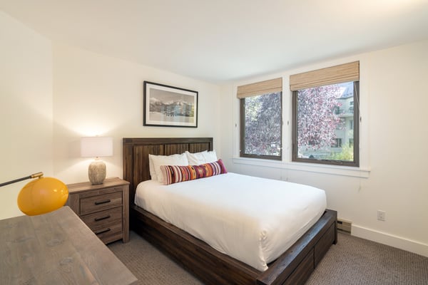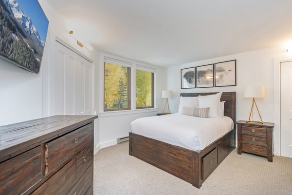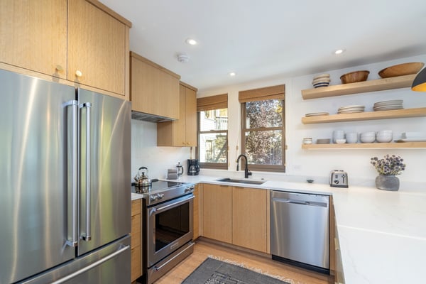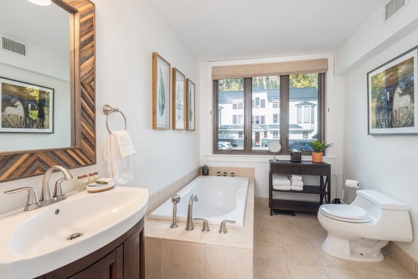 Nearby construction may result in noise disturbances. For further details on how this might affect your stay, please reach out to a Rental Escapes villa specialist. Plunge J offers the perfect accommodations for any time of the year, and this condo is especially popular during the area's famous ski season because of its convenient walk to ski access directly across from Lift 7 and the River Trail as well as a very short walk to the Coonskin Lift. Recently remodelled, this single-level condo sits on lovely Pacific Street near Clark's Market and the popular Siam Restaurant with the Galloping Goose bus stop right across the street to take you around and about Telluride. Up to six guests may expect to enjoy a comfortable stay at Plunge J, and it offers three bedrooms and three baths perfectly situated across 1,300 square feet of beautifully furnished and decorated living space. These areas feature beautiful hardwood floors and numerous large windows with pleasant views of the box canyon. Upon entering the home, you'll discover a comfortable bench where you can sit and put on or remove your boots. In the living room, there are plenty of comfy sofas and chairs for the entire group as well as a large flat-screen television. The kitchen is a dream with an abundance of cabinet and counter space, a large refrigerator, a flat-top stove, an oven and a microwave. It's a pleasure to cook in, but you may also request the services of a private chef to do the cooking for your entire group. Enjoy your meals at the dining table with seating for six. Each bedroom boasts carpet to keep your toes warm on even the coldest mornings. The primary bedroom offers a plush queen-size bed with a large private bath with an oversized tub, two separate toilets and a big closet in both the bath and the bedroom. The other two bedrooms feature ample closet space, and one comes with two twin-size beds. This room is just right for any singles, teens or children in the group, and it shares a bath with a tub/shower combo down the hall with another nice queen suite.
