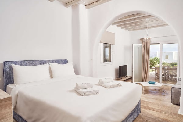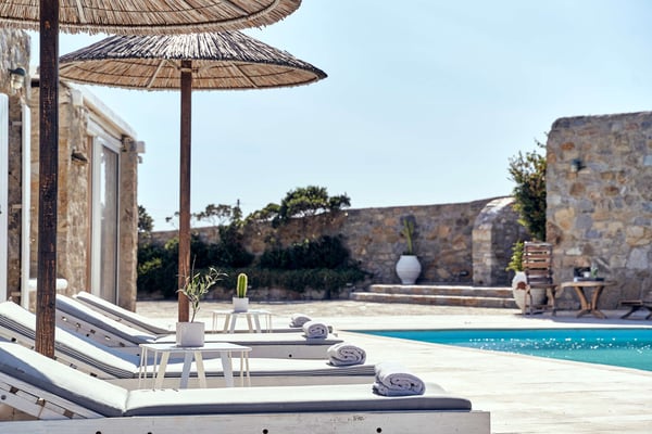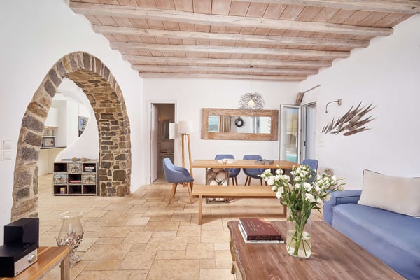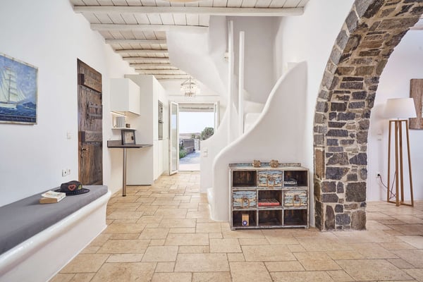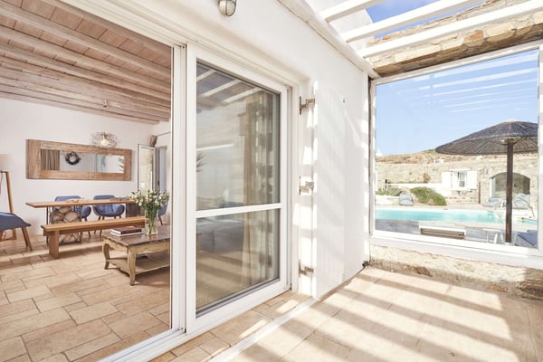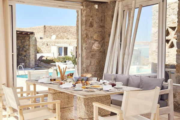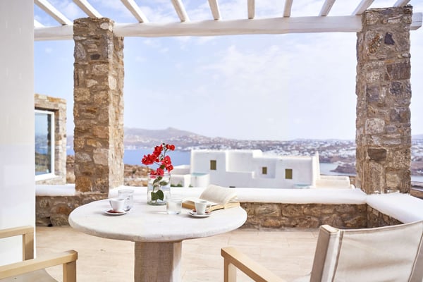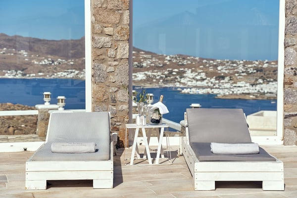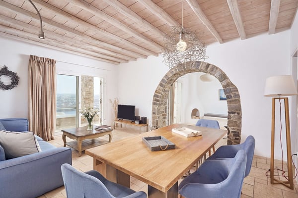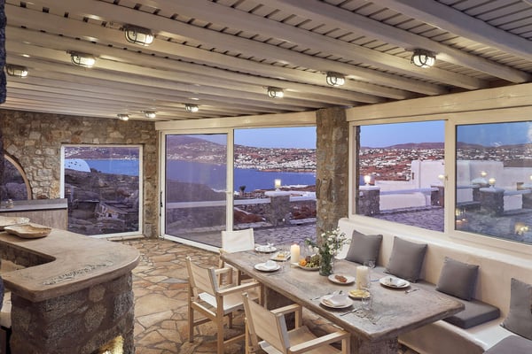 Villa Petrolefko is located in Ano Diakoftis area, one of the most prime locations in Mykonos, and welcomes you to a paradise of sheer luxury. Only a few minutes away from the famous Ornos beach, Villa Petrolefko, is spacious, built in a modern way but influenced by the Cycladic architecture overlooking Chora, the main town of Mykonos. It combines privacy and tranquility with beautiful landscapes and spectacular views of the Aegean Sea and is only a few minutes away from the nightlife and the famous restaurants of the island. With six beautiful bedrooms, a large living room and a fully equipped kitchen you will have everything that you need! The outdoor space is simply impressive with a magical view. The BBQ will make your life easier in case you need a relaxing evening at the privacy of your villa. Ideal for friends' gathering, family or couples’ vacations!