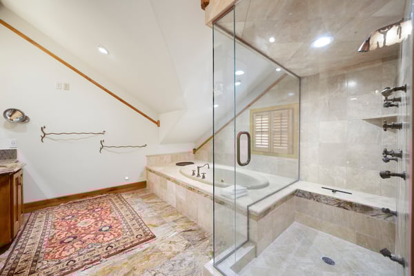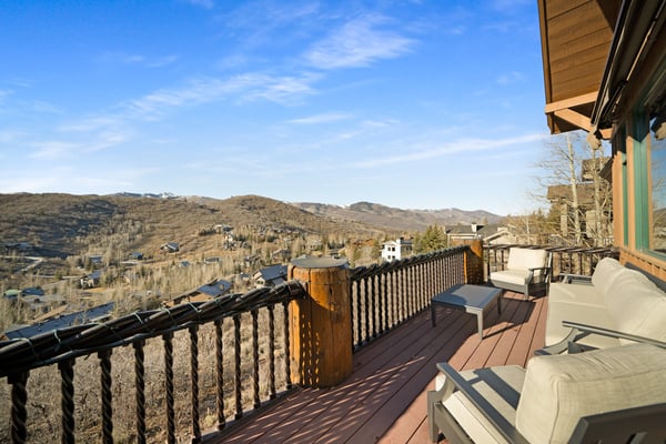 Rental Escapes has partnered with Ski Butlers to offer you the best rental experience in the industry. No more lines. Ski Butlers is a full-service ski and snowboard company that delivers the equipment to you. Contact a villa specialist for more information. A marvelous mountain getaway awaits at Timber Lodge at the Oaks. Ideal for groups, this sprawling seven-bedroom, 5.5-bathroom home sleeps up to 14 guests and is minutes from the Deer Valley Resort base area and Main Street. Experience varied ski terrain, scenic hiking and biking trails, golf courses, and even boating adventures on the Jordanelle Reservoir. Guests will love spending chilly nights sipping cider and wine by the gas fireplace and warm Summer days enjoying the panoramic view from the deck. Entering the main level of this three-level lodge, guests are welcomed by soaring ceilings, timber columns, and hardwood floors—all adding to a warm yet elegant living room perfect for mellow, fire-lit evenings. Curl up on the two leather sofas and matching barrel armchairs to watch TV or enjoy the picture window’s mountain view. Granite countertops and high-end appliances in the kitchen inspire home-cooked meals to share at the 10-seat formal dining table, with six additional seats at the breakfast bar. Savor the view from the furnished wraparound deck while relaxing or barbecuing on the grill. At bedtime, choose between a guest bedroom with one king bed and a private bathroom, a guest bedroom with one queen bed, or a guest bedroom with two twin beds. Downstairs, discover a den with a sectional, 75” Smart TV, and a fireplace, which offers additional space to unwind. Refreshments are always nearby thanks to the adjacent wet bar, which boasts an ice machine, beverage fridge, microwave, and four stools. Slip out to the covered patio for a delightful soak in the private hot tub. Also on this level is one guest bedroom with a king bed and outdoor access, and one bunk room with two full-over-full beds. On the top floor, guests will find the beautiful primary bedroom with a king bed, TV, balcony, gas fireplace, and private bathroom, alongside a guest bedroom with a king bed. Let Timber Lodge at the Oaks set the scene for an unmatched Park City vacation. Parking for three cars in the garage and two in the driveway makes visiting Snow Park Lodge at Deer Valley (6 min.) or Park City Mountain base (10 min.) for ski access easy.