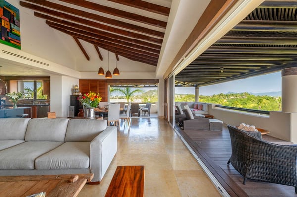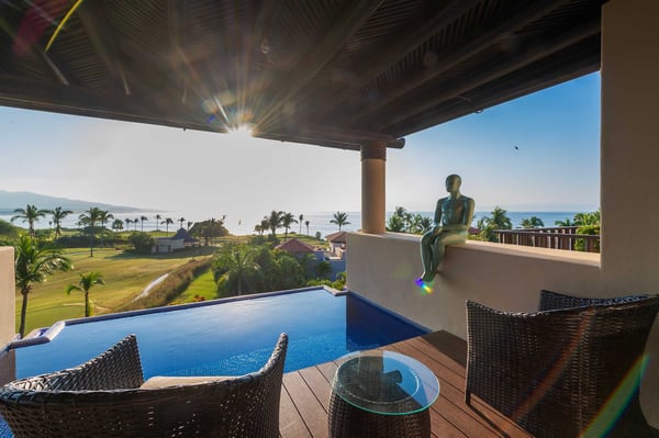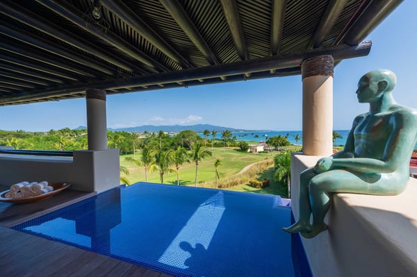The Premier Golf Membership grants access to Pacifico Golf Course ($), Bahia Golf Course ($), the Tennis Centre ($), the Fitness Center ($), El Surf Club based on min. consumption fee ($), St.Regis Beach Club based on availability and min. consumption fee ($), Pacifico Beach Club, Sufí Ocean Club and Kupuri Beach Club. Contact one of our Villa Specialists for more information. This condo is located in the charming gated community of El Encanto, inside the Punta Mita Resort. PH Vista Encanto offers spectacular ocean views from all of the bedrooms and the plunge pool. Its ample terrace space immerses you in the jungle, golf course, and ocean. With no neighbors to the side, it gives its guests the perfect privacy and value they deserve.