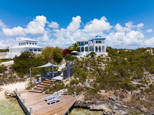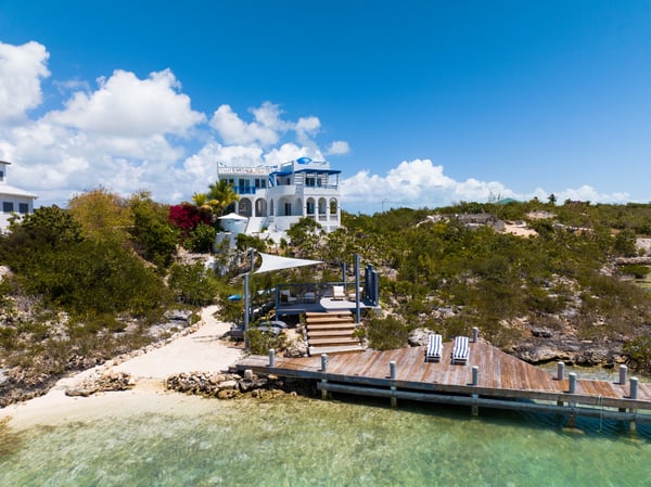 Enjoy breathtaking ocean views from this four-tiered home's multi-level deck and indoor/outdoor living space. This property in Turks and Caicos boasts unparalleled views and a private dock and sandy beach for launching watercraft into Silly Creek for SUPs or kayaking. A 15-minute walk will take you to Taylor Bay, known for its stunning white sand beach and calm, crystal-clear blue waters. This home boasts breathtaking ocean views from every room, as it is situated above Silly Creek, Chalk Sound, and the Caribbean Ocean. The master suite is generously sized and features a private bathroom/shower and a terrace deck overlooking the ocean. The second room, a queen suite, also has ocean views and offers a stunning view of Chalk Sound from its private bath/shower and viewing terrace. The neighbourhood of Silly Creek/ Chalk Sound is located on the south side of the island and is exclusive and quiet. It is about a 15-20 minute drive from the large hotel and tourist area at Grace Bay. The only way to access this home is through Chalk Sound Drive, which is the only road in and out of the area. The police station is situated at the start of Chalk Sound Road.