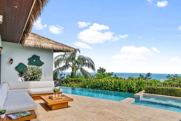 Welcome to Puesta del Sol, this tropical retreat feels like a private mini resort, featuring 6 luxury detached suites, breathtaking ocean views, unique amenities, and seamless access to fun, adventure and authentic culture. Standout Features: • Stunning ocean views and magical sunset • Infinity Pool with living room access and TV for watching your favorite game • Outdoor speakers playing the perfect music for your tropical escape • Central location near cafes, restaurants, markets, and cultural attractions • Easy access to surfing, horseback riding, and other outdoor adventures • Playful howler monkeys adding charm to your stay