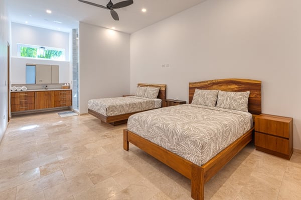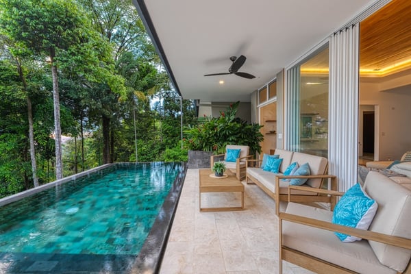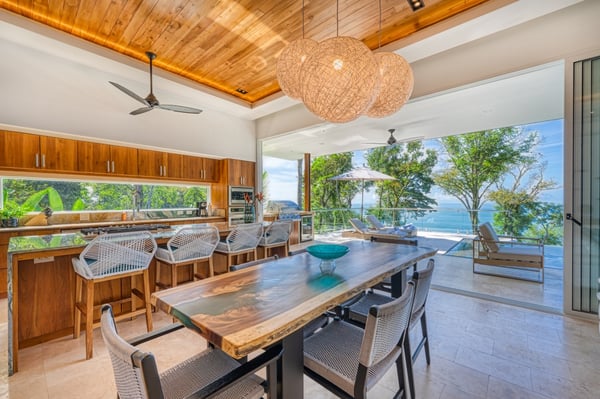 Welcome to this brand-new villa located in the exclusive gated community of Escalares Village, where convenience and luxury converge. Nestled in the lush jungle, this home offers breathtaking ocean and jungle views that will impress even the most discerning travellers. With four spacious bedrooms and four and a half luxurious bathrooms, this home is designed for comfort and style. High-end finishes such as travertine floors, marble baths, stainless steel appliances, and teak ceilings create a warm and inviting ambiance. Floor-to-ceiling glass doors bring in abundant natural light and cool ocean breezes. Step outside onto the fully landscaped property and you'll find a paved driveway, a garage, and a tree-top infinity saltwater pool, inviting you to unwind while taking in the stunning sunset views. Privacy is paramount in this gated community, yet all the amenities you desire are just a leisurely stroll away. Immerse yourself in the vibrant Escalares Village, where the famous Scala Restaurant, renowned for its upscale dining and bar experience, awaits you. Alexa's Boutique Supermarket offers a convenient shopping experience, while Sibu, a charming cafe and coffee house, is perfect for a morning pick-me-up. And for the ultimate in wellness and relaxation, indulge in the SPA for wellness, beauty, and lifestyle. As you enter through the security gates, you'll be struck by the attention to detail that the developer has poured into this dream estate. The landscaped driveway, tropical plants, and fruit trees create a welcoming and peaceful ambiance. Conveniently located just a short 5-minute drive from the coastal highway, this property provides easy access to the stunning beaches and attractions of Costa Rica.