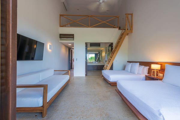 The Premier Golf Membership grants access to Pacifico Golf Course ($), Bahia Golf Course ($), the Tennis Centre ($), the Fitness Center ($), El Surf Club based on min. consumption fee ($), St.Regis Beach Club based on availability and min. consumption fee ($), Pacifico Beach Club, Sufí Ocean Club and Kupuri Beach Club. Contact one of our Villa Specialists for more information. Located within the Las Terrazas community in Punta Mita, Penthouse Pacifico is a luxurious three-bedroom residence offering picturesque views of the golf course and lake. With Premier Golf Membership, you’ll enjoy access to world-class amenities, beach clubs, and golf courses. The penthouse includes daily housekeeping, breakfast and snack preparation, and a golf cart, ensuring that your stay is convenient and enjoyable. The expansive terrace, paired with elegant interiors featuring a gourmet kitchen and a spacious living area, provides the perfect atmosphere for relaxation.