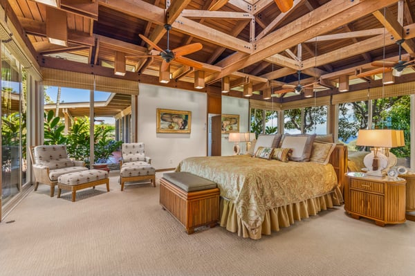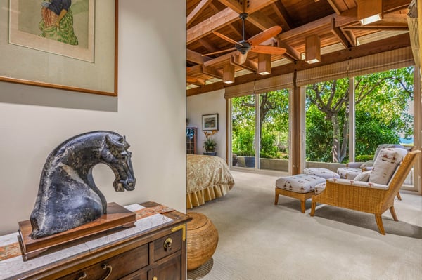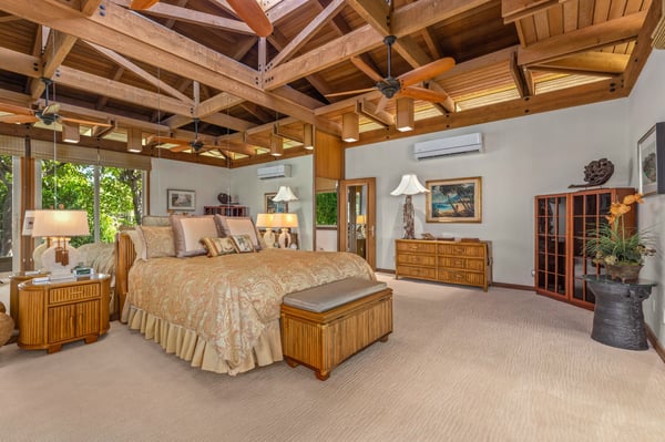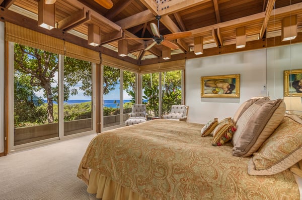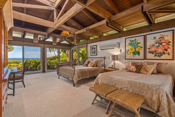 Guests of Ka Hale Hōkū have access to all facilities at Mauna Kea Beach and Hapuna Beach Prince Hotels. Facilities include beaches. golf courses, tennis courts, spa, fitness center, restaurants, and shops. Situated within the Mauna Kea Resort, this home is close to two championship golf courses: the newly renovated Mauna Kea Golf Course and Hapuna Golf Course. Furnished in a natural tropical motif with high beam ceilings and lots of windows, this spacious Fairways South home is perfect for experiencing the relaxed Hawaiian lifestyle. Carefully situated, almost every room enjoys spectacular ocean views. The beautiful backyard boasts a built-in pool with a tiled lanai and BBQ. This unique home offers two private bedroom suites, each with its own bathrooms on opposite sides of the house. The primary bedroom is furnished with a king-size bed, while the guest bedroom contains two queen beds. Hawaii TAT#: W01342362-01 STVR#: STVR-19-371183.