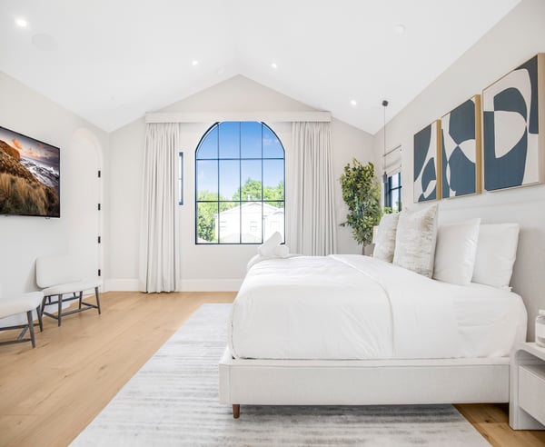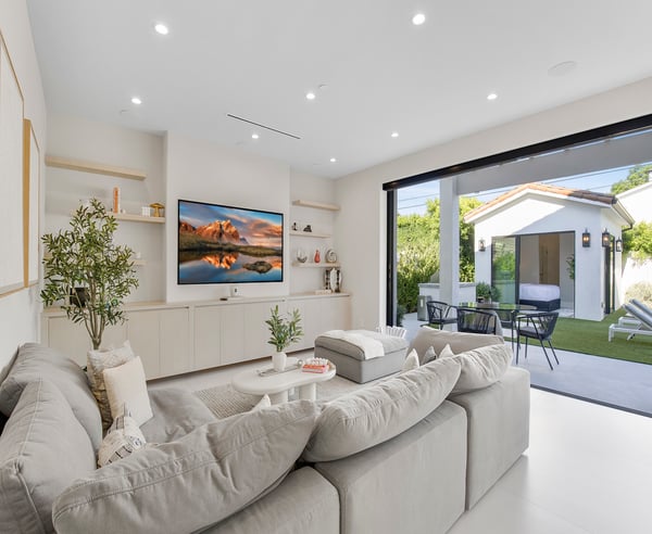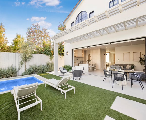 This residence is more than just a home—it's a retreat in the heart of one of LA's most desirable areas, offering a perfect blend of comfort, elegance, and potential. Every corner of this residence reflects thoughtful design, with hardwood floors throughout that infuse the interiors with a sense of warmth and timeless charm. This villa boasts five spacious bedrooms, each designed with comfort and style in mind, along with five and a half bathrooms that offer both luxury and convenience. Mediterranean-style design with white stucco walls, terracotta roof tiles, and large black-framed windows that add a contemporary touch. The living spaces are bathed in natural light, creating an inviting atmosphere that’s perfect for both relaxation and entertaining. The interior seamlessly extends into the outdoor space, thanks to the large, open sliding doors that create a perfect indoor-outdoor flow. Comfortable lounge chairs and outdoor seating areas invite relaxation, while the well-lit interior spaces suggest a warm and welcoming ambiance. Outside, you'll find a serene yard that offers a peaceful escape from the hustle and bustle of the city. The spacious outdoor area includes a beautifully designed pool with an integrated fire pit lounge, surrounded by manicured green lawn and paved walkways. Situated in one of LA's most vibrant communities, this home offers easy access to top-rated schools, trendy shops, gourmet restaurants, and cultural attractions. With its prime location, spacious layout, and enduring charm, this home is more than just a place to stay—it's a destination in itself. Please Note: No garage access. HSR25-003056