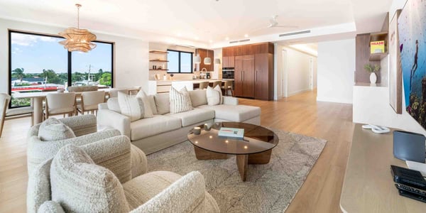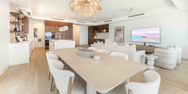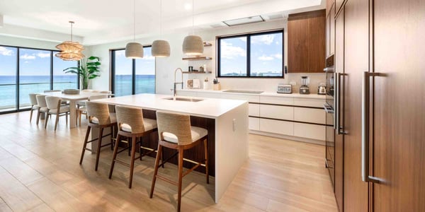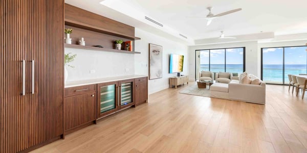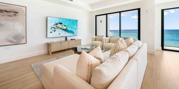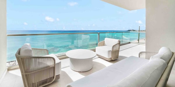 Experience luxury living at the property on Seven Mile Beach. Located just north of the Kimpton Resort, The property is convenient to grocery stores, gourmet restaurants, five-star resorts, and an array of snorkeling and scuba excursions. This oceanfront jewel offers six spacious 4-bedroom residences with dazzling ocean views. A deep list of unique amenities includes a rooftop terrace with a fitness center, shared pool, and dedicated yoga space. Beach access via a private gated sundeck is under development and will include beachfront cabanas with a private staircase to the barefoot sandy beach. Accessible by elevator from each residence, the exclusive rooftop terrace features a private cabana for each residence—an unprecedented feature in Cayman residential development. The property boasts one of the largest rooftop pools on Grand Cayman with mesmerizing touch-the-sky views overlooking Seven Mile Beach. The property ensures rooftop accessibility for all guests with a wheelchair-accessible elevator plus a wheelchair lift to access the pool deck and cabanas. This 4-bedroom penthouse condo is designed for maximum privacy. With only two residences per floor, each condo is a corner unit with north or south-facing views. All condos have floor-to-ceiling sliding glass doors that open to a large, glass-railed balcony. Each residence includes two complimentary underground parking spaces. The chef’s kitchen, with top-of-the-line appliances and quartz countertops, is a culinary dream. A separate wine bar comes equipped with a sink and a beverage fridge. Beach Notes The property sits at the northern tip of Seven Mile Beach, approximately one mile north of the Kimpton Resort. Guests benefit from exclusive access to a private Beach Deck equipped with sun loungers and sunbrellas. To access the sandy beach, use the stairs at the end of the road towards the gas station.