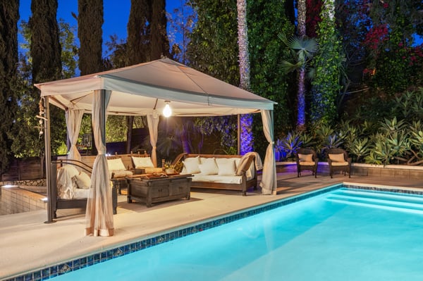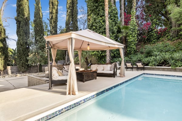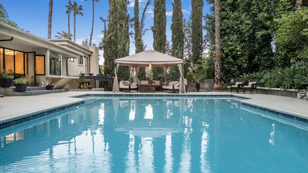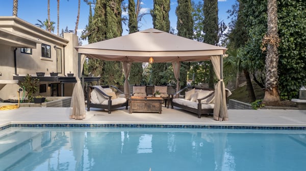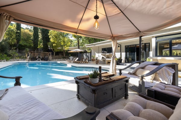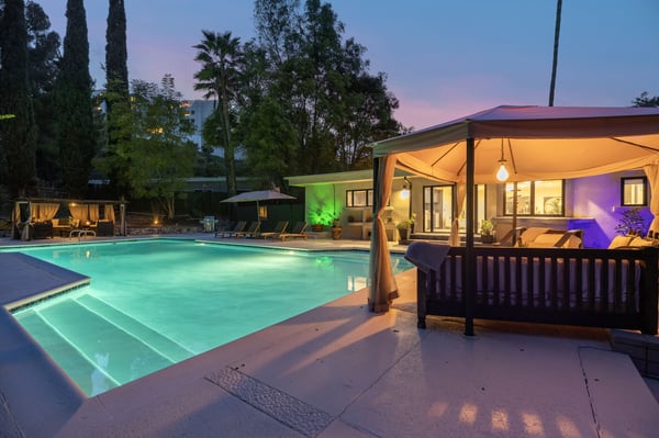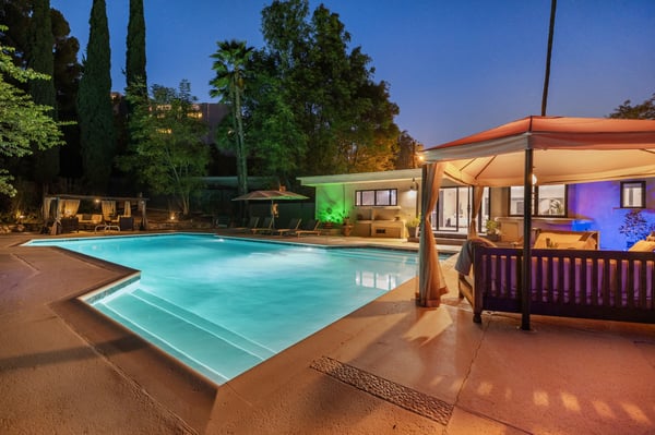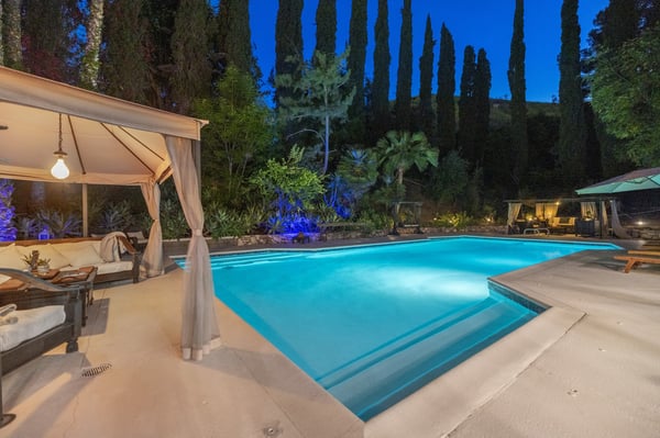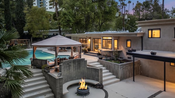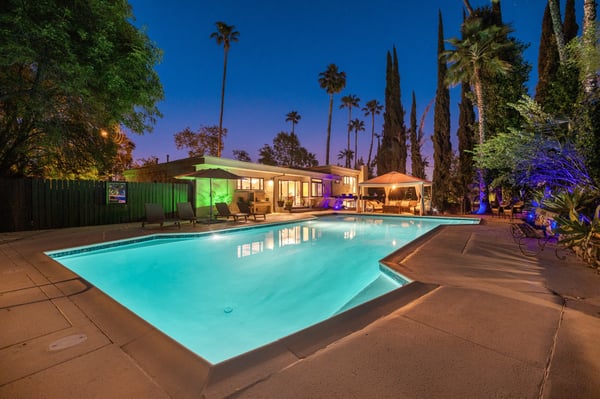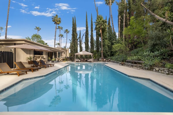 Step inside to a breathtaking open concept living area, where a sleek cement stone island under designer pendant lighting sets the stage for unforgettable family gatherings. This fully remodeled masterpiece is adorned with original art by renowned artists and bespoke, imported furnishings, offering a turnkey haven for discerning travelers. The chef’s kitchen, a pinnacle of luxury, boasts a side-by-side refrigerator and freezer, double ovens, and premium supplies, fully equipped for culinary mastery. The dining room, with a handcrafted, imported table seating 10, transforms every meal into a sophisticated affair. Four opulent bedrooms and 3½ exquisite bathrooms ensure supreme comfort. The primary suite, a spa-inspired sanctuary, features dual rainfall showers and an expansive walk-in closet with floor-to-ceiling mirrored doors, soundproofed for serenity. Three additional bedrooms, with mirrored closets, offer stylish, family-friendly spaces. Foam insulation, central climate control, and integrated TV entertainment create a seamless, high-end experience. Outside, an exotic, secluded backyard oasis awaits, anchored by an extra-large pool and enveloped in lush greenery for total privacy. The lower level, featuring a fire pit and basketball hoop, adds playful elegance to this luxurious retreat. Fully loaded with every amenity, smart locks, and move-in ready, this singular property invites families to arrive and indulge in a lifestyle of rare art, unmatched convenience, and private sophistication—a flawless escape for those who demand the extraordinary. Please note: Pool heating is not available at this property. HSR25-000710