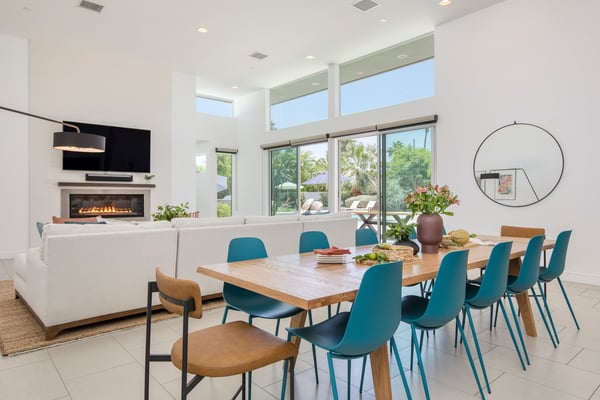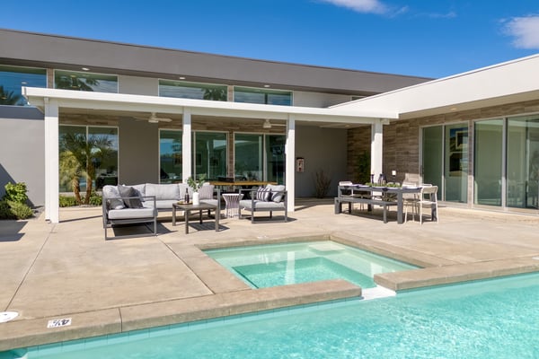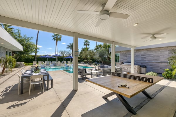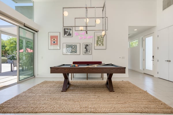 • You must be at least 21 years old to book this property. • This is a smoke-free home. Violation of the no-smoking policy will result in a $500 fee for additional cleaning and other related costs, in addition to the Guest being responsible for any damages attributable to smoking beyond said fee. • This home allows pets for a fee. If undisclosed pets are brought into the home without approval there is a fine of $500 per pet. • Please be considerate of your neighbors and mindful of noise levels. Noise violations may result in fines. Please also note we do not provide speakers or sound systems. • Please note that the photos may not be exactly accurate to the furnishings of this home, but the layout and amenities are similar and comparable. • Occupancy includes an additional two beyond bed count. 2 twin rollaway beds and additional linens are located in the primary closet. • All bedrooms feature an ensuite bathroom. • Home is fully stocked with a coffee machine, coffee, laundry detergent, indoor and outdoor towels, kitchen cookware, Brita water filter, first-aid kit, hair dryers, and toiletries. • POOL & SPA: Pool heat is available at this home at an extra cost and needs to be requested at least 48 hours before your stay. Spa Heat is complimentary for guests. Pool heat is not available between May 1st and October 1st. Our desert pools are heated to a maximum temperature of 86 degrees. Please note that we do not exceed this temperature for pool heating. If you opt for pool heat please know that pool heat and spa heat can only be run one at a time, not concurrently. During the summer months, desert temperatures are extremely high, which may cause the pool temperature to rise as well. Unfortunately, there is nothing we can do to control this. • Please note that the pool sun loungers do not have cushions and we are unable to provide them upon request, we apologize for this inconvenience. • Our homes feature NFL Sunday Ticket programming through the TV's YouTube subscriptions in each room for full sports streaming entertainment. • Please be aware that during festivals like Coachella, although the Villas are within walking distance of the grounds, road closures and specific access points can extend the walking distance to the festival entrance to approximately 1.4 miles. While some guests choose to walk and walking is possible, we strongly recommend purchasing golf cart services for easier access. • Please be aware of wildlife such as insects, scorpions, and snakes. Our team does their best to check the home before your arrival, but please be mindful about leaving the doors & windows open during your stay. • Villa 8: The garage accommodates 3 cars. The driveway accommodates 3 compact cars. • Villa 9: The garage accommodates 1 car. The driveway accommodates 4 compact cars. • The rates for this property are dynamic and are constantly changing. The price listed above is only a starting rate and does not necessarily reflect the price for your travel dates. Please contact a Villa Specialist for exact pricing details.