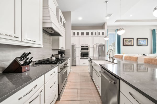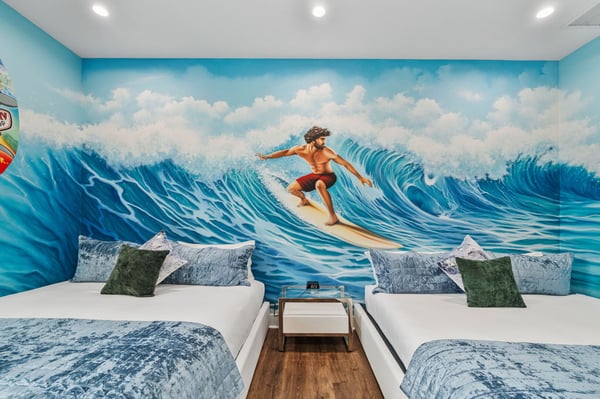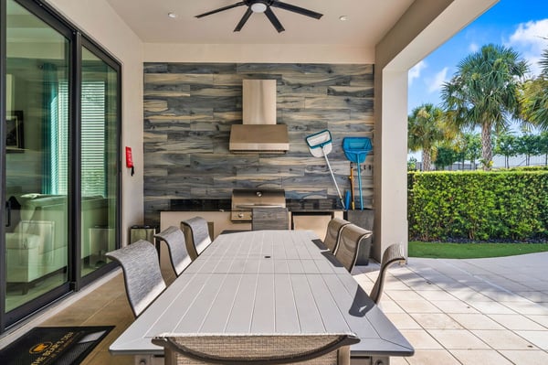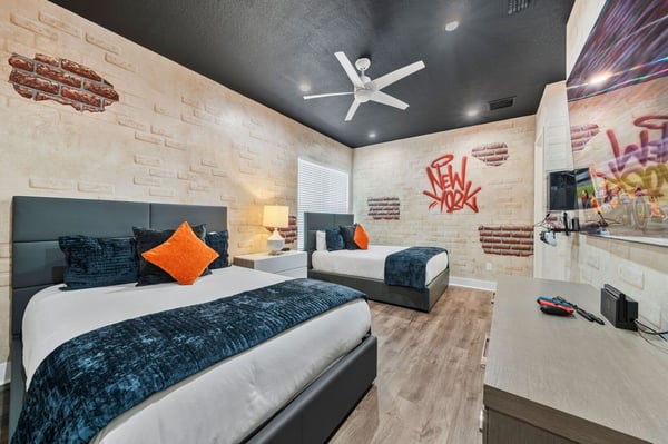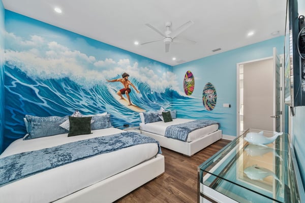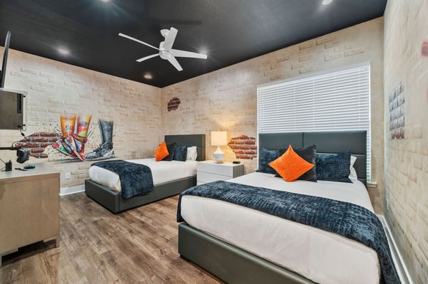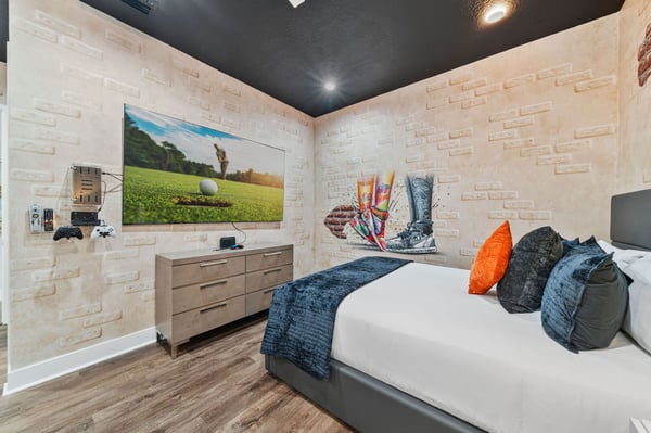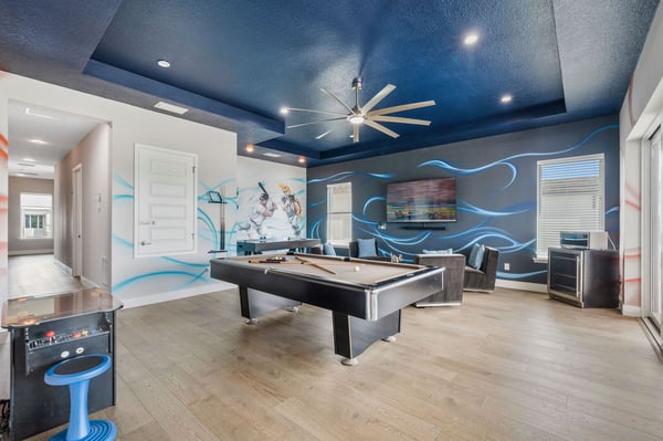 This newly refurbished six-bedroom, six full bathroom, and three half bathroom luxury home offers the perfect blend of comfort, entertainment, and upscale living—just minutes from Orlando’s world-famous theme parks. Designed with families and groups in mind, this spacious home features high-end finishes throughout and a fully equipped kitchen with modern appliances, perfect for preparing meals or entertaining. The open-concept layout flows seamlessly into the dining and living areas, creating a welcoming space to relax and reconnect. Upstairs, the fun never stops in the expansive loft area featuring an air hockey game table, a full-size pool table, and a classic arcade game console—ideal for both kids and adults. Movie lovers will enjoy the private theater room with tiered seating, while golf enthusiasts can practice their swing anytime with the in-home golf simulator. Step outside to your own private oasis, complete with a sparkling outdoor pool, comfortable lounge seating, and a covered outdoor dining area. The summer kitchen makes it easy to grill and dine al fresco, perfect for enjoying warm Florida evenings with family and friends. After a day of fun, retreat to one of six beautifully appointed bedrooms, each with its own en-suite full bathroom for maximum privacy and comfort. Three additional half bathrooms throughout the home provide added convenience for guests. Whether you're enjoying the resort amenities, exploring nearby attractions, or simply relaxing in your own private paradise, this Reunion Resort home is the perfect destination for an unforgettable getaway.