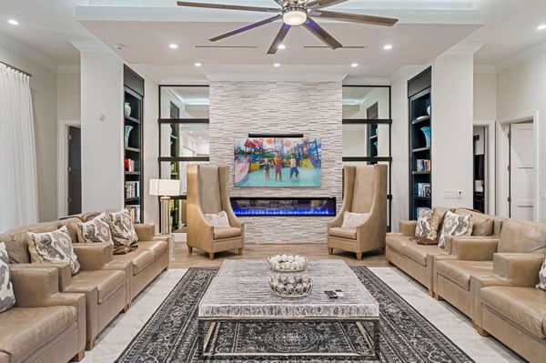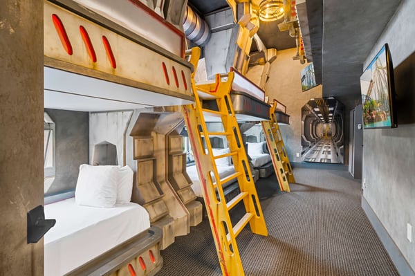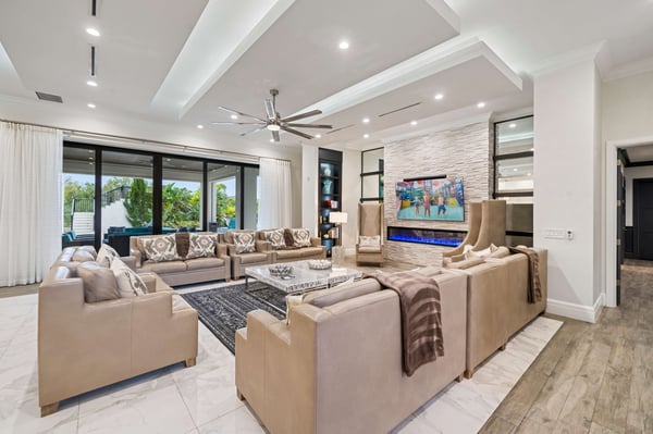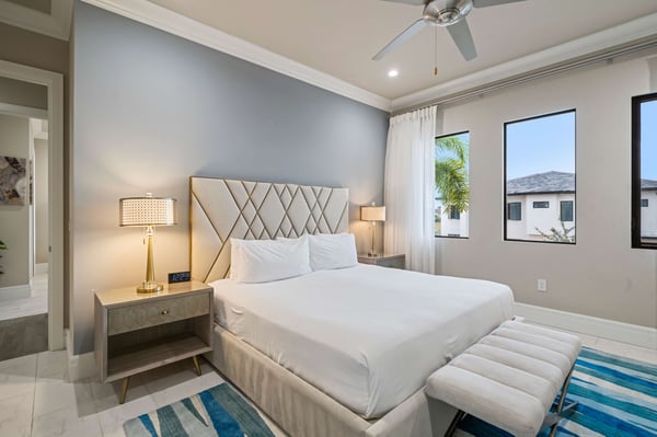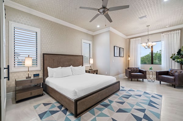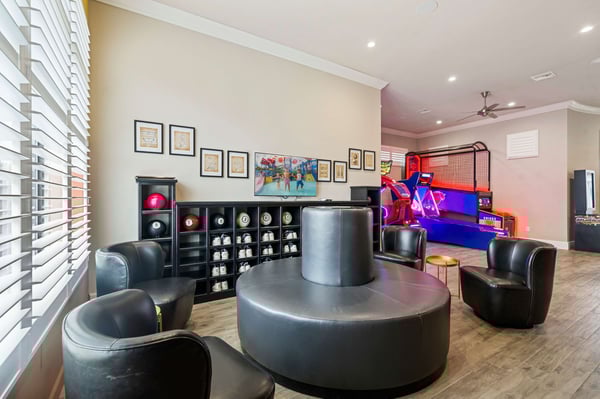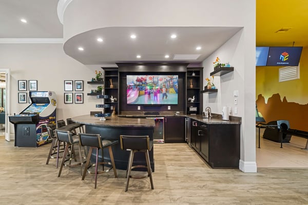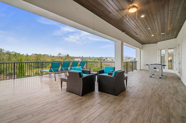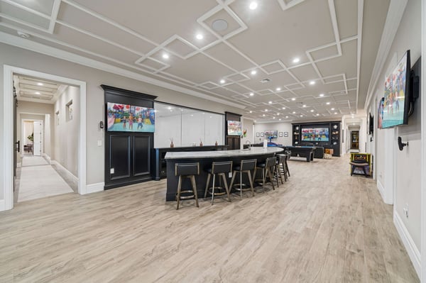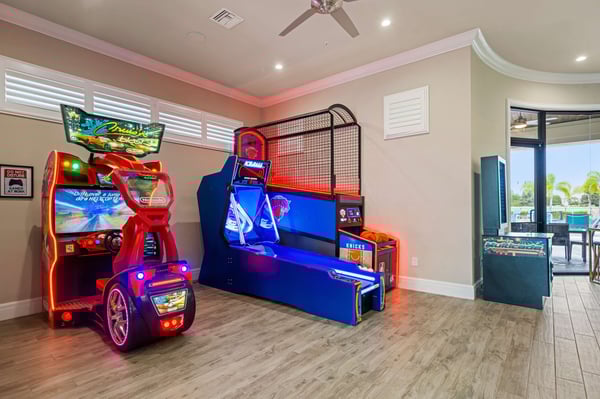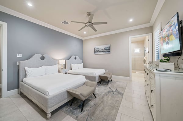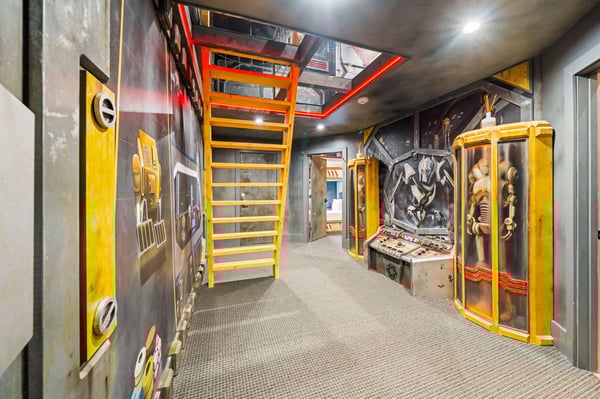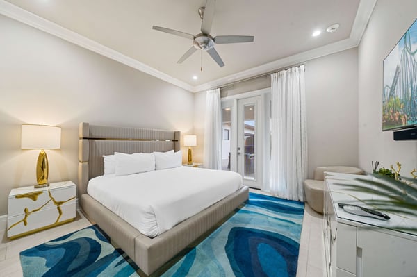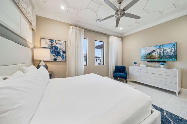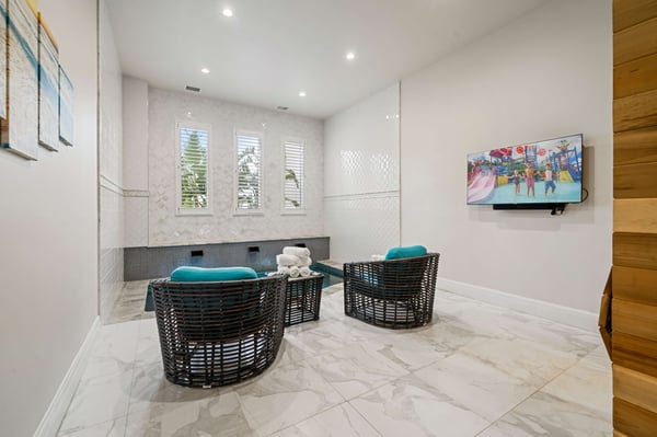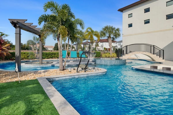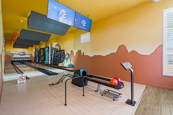 Welcome to Stonehaven Estate, a 21,397 sq. ft. masterpiece that redefines luxury vacation living. This 14-bedroom, 16-bathroom estate sleeps up to 36 guests, making it the ultimate destination for family reunions, group retreats, or milestone celebrations. This home offers unparalleled amenities, sophisticated design, and boundless entertainment options, ensuring an unforgettable stay for all. As you step inside, you’ll be greeted by grand interiors featuring high-end luxury finishes, expansive living spaces, and an atmosphere of modern elegance. The chef’s kitchen is a culinary dream, equipped with state-of-the-art appliances, extensive counter space, and everything you need to prepare gourmet meals. Adjacent to the kitchen, the ample dining areas provide room for large group meals, offering the perfect setting for shared moments and celebrations. Each of the 14 bedrooms is a private sanctuary, designed to blend comfort and style. The home’s themed kids’ bedroom is sure to captivate young adventurers, while adults will appreciate the serene and sophisticated decor in the other bedrooms. Every room is designed with high-quality linens, plush furnishings, and luxurious en-suite bathrooms, ensuring a restful stay for all guests. Stonehaven Estate is an entertainer’s paradise, offering an unmatched array of amenities for fun and relaxation. The home features a dedicated spa room with a sauna, an in-home gym for fitness enthusiasts, and a professional-grade golf simulator for those looking to perfect their swing. Sports lovers will enjoy the private basketball court, while the arcade/game loft provides endless entertainment with classic and modern games. The movie theater offers a cinematic experience in the comfort of your own home, and the bowling alley adds an extra layer of excitement for family-friendly competition. The outdoor area is equally impressive, designed to embrace Florida’s beautiful weather. The expansive back patio features a fully equipped summer kitchen, perfect for preparing meals al fresco. Lounge by the hot tub or relax in one of the many seating areas, soaking up the sun and enjoying the serene surroundings. This outdoor space provides the perfect balance of relaxation and entertainment, making it a true highlight of the home. Whether you’re exploring nearby theme parks, enjoying world-class dining, or simply unwinding in the comfort of this extraordinary home, every moment is designed to create unforgettable memories.