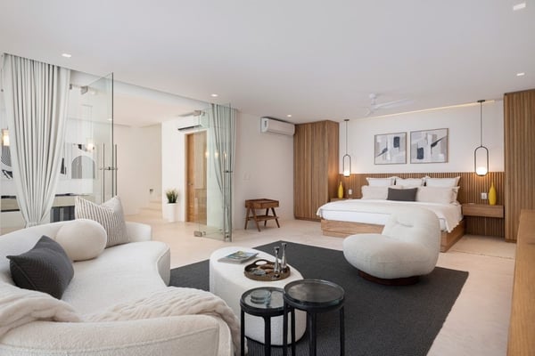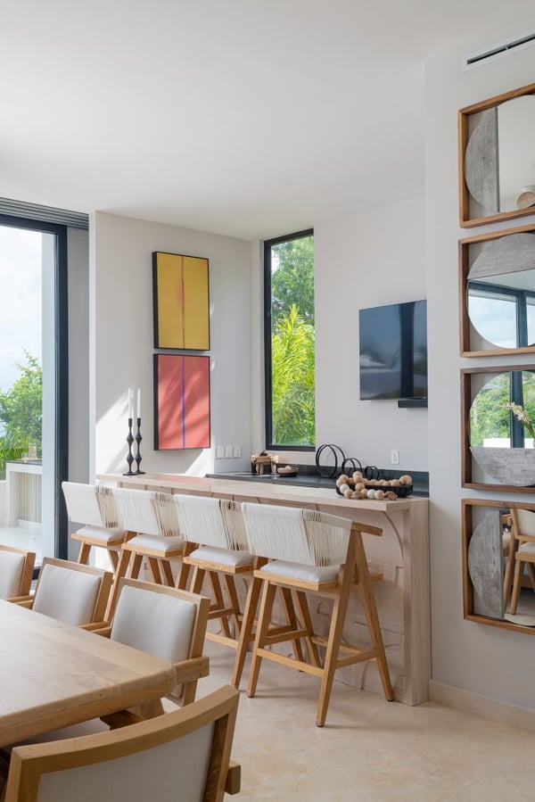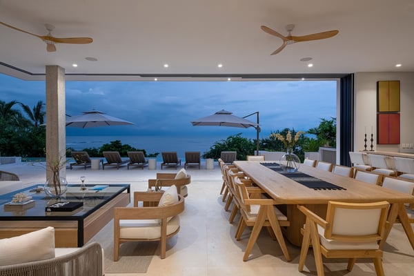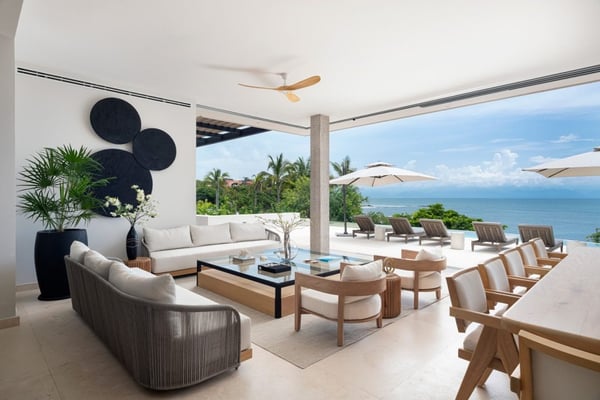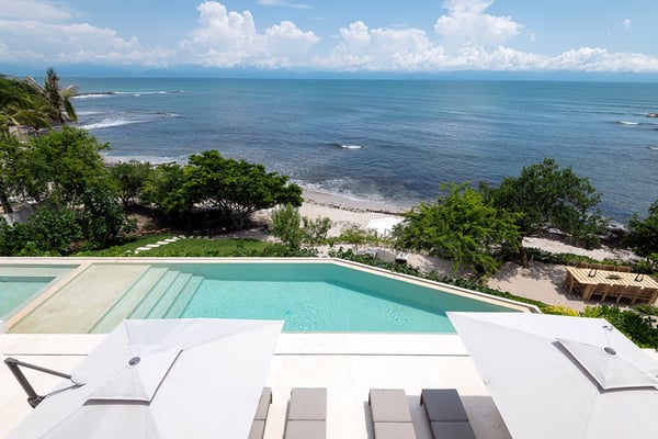 Experience unparalleled luxury at this exquisite 8-bedroom beachfront villa in Bolongo Resort, Punta de Mita. Here, the beauty of nature and sophisticated style come together seamlessly. Wake up to unobstructed ocean views and the spectacle of whales breaching just offshore, while vibrant tropical birds grace the sky above. Designed with large groups and families in mind, this residence envelops you in tranquility while providing top-notch amenities and comfort. With a full team of staff on hand, you’ll enjoy effortless luxury, from gourmet meals to daily housekeeping. With its stylish, modern interiors and expansive outdoor spaces, this retreat is perfect for both relaxation and adventure. Relax by the pool or jacuzzi, engage in beachfront fun, or challenge friends to a game of pool. Your tropical paradise awaits.