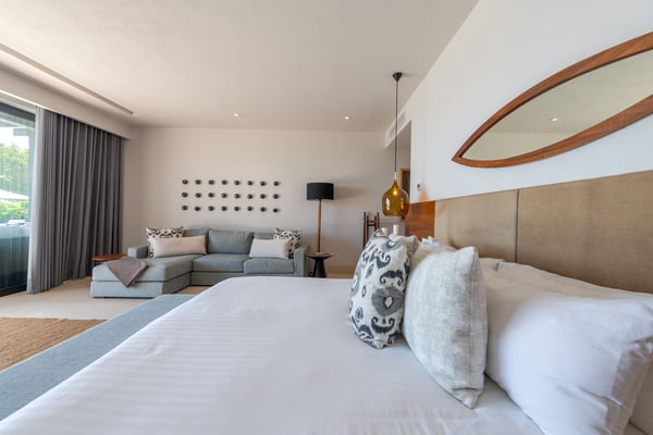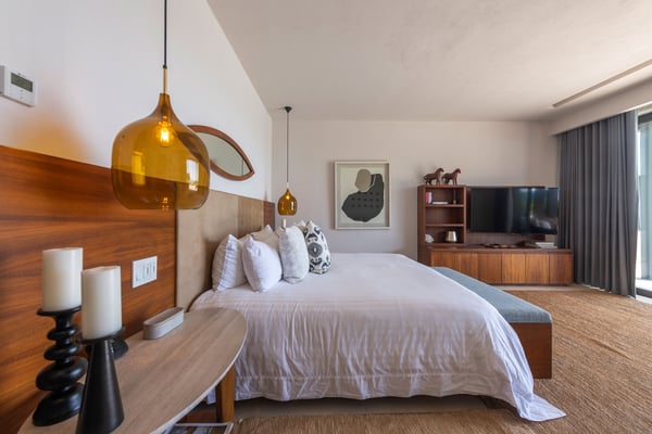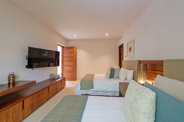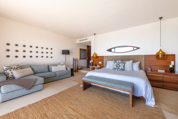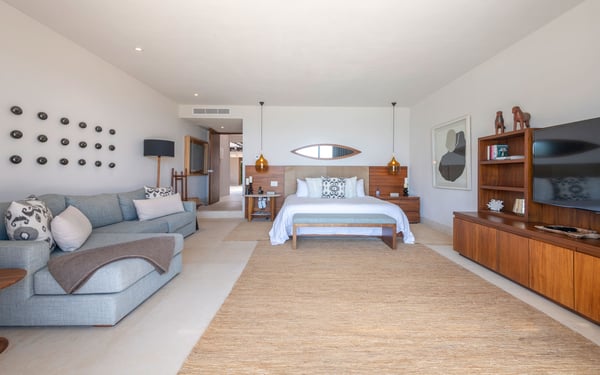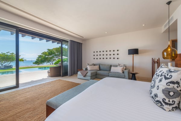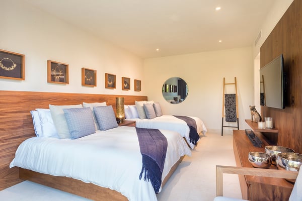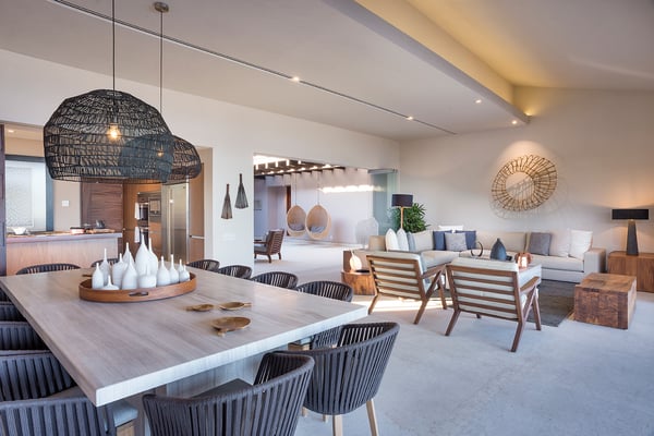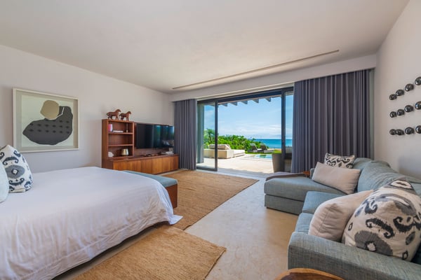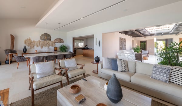 The Premier Golf Membership grants access to Pacifico Golf Course ($), Bahia Golf Course ($), the Tennis Centre ($), the Fitness Center ($), El Surf Club based on min. consumption fee ($), St.Regis Beach Club based on availability and min. consumption fee ($), Pacifico Beach Club, Sufí Ocean Club and Kupuri Beach Club ($). Contact one of our Villa Specialists for more information. This stunning single-level, four-bedroom oceanfront villa seamlessly blends contemporary Mexican architecture with modern finishes, offering breathtaking ocean views. The hacienda-style courtyards open into expansive living spaces that flow effortlessly toward the sea.