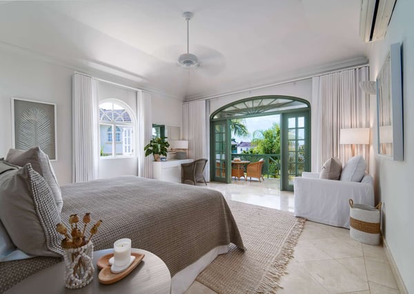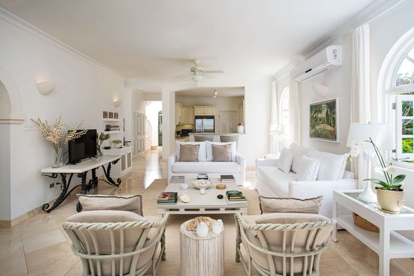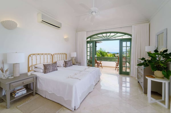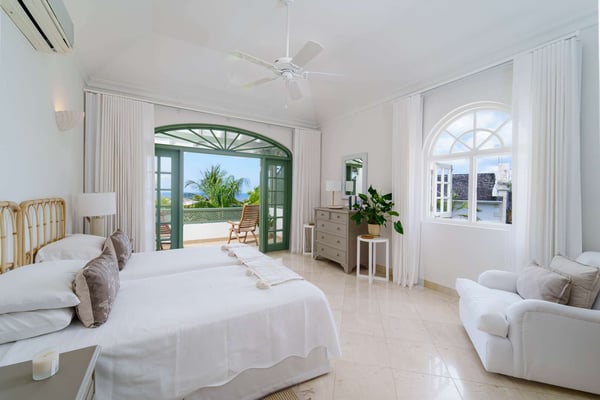 Nearby construction may result in noise disturbances. For further details on how this might affect your stay, please reach out to a villa specialist. The Sugar Hill Resort community offers a number of resort amenities. Guests will have access to the Clubhouse, restaurant, resort swimming pools and tennis courts. Jade Vine is a stylish and comfortable four-bedroom villa located in the exclusive Sugar Hill community on the West coast of Barbados. The villa enjoys an elevated aspect within this attractive community and offers expansive views of the beautifully landscaped gardens and the ocean as well as pleasant cooling breezes. The elegantly furnished air-conditioned living room opens onto a spacious terrace via French doors, with sitting and dining areas that allow guests to fully enjoy the amazing views and the stunning evening sunsets. The deck around the private plunge pool offers sun loungers as well as additional outdoor seating. All of the bedrooms are air-conditioned, tastefully furnished and feature stylish and well-appointed en suite bathrooms. There are two bedrooms located on the upper level of the villa, each with private balconies overlooking the pool deck. The third bedroom is located on the ground floor. The fourth bedroom is located in a separate cottage that features a small kitchenette. Sugar Hill is a private, exclusive inland community on 50 acres, boasting commanding views of the Caribbean Sea. It's a short drive from the West Coast beaches and the amenities of Holetown, including international brand shopping, banks, vibrant nightlife, and excellent restaurants. Guests at Sugar Hill-Jade Vine enjoy access to the Sugar Hill Clubhouse, pool, fitness center, and tennis courts. Jade Vine is an excellent choice for an island vacation a cool and comfortable villa in an exclusive community with everything you need in easy reach!