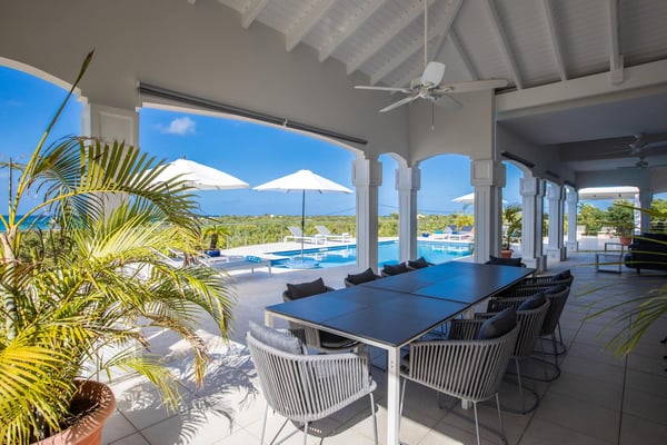 Villa Oceane welcomes you to experience the Caribbean lifestyle. The living area is spacious and features high ceilings. That should provide a comfortable and open atmosphere for guests. The sprawling terrace is a fantastic feature, with shaded seating areas for guests to relax and take in the beautiful surroundings. The swimming pool is now heated from December 15th to April 30th, outside this period the heating of the swimming pool is optional, at an additional cost of $350 per week. The property has four bedrooms, each with an ensuite bathroom. This should provide ample space and privacy for guests. Additionally, having three bedrooms with interior access is a convenient feature that allows guests to move freely around the property. Overall, it sounds like Villa Oceane has been designed with both comfort and functionality in mind. Guests should be able to enjoy the luxury and style of the property while still feeling at home and relaxed. This property is ideal for families and couples travelling together to the beautiful island of St Martin and can be rented as a two, three or a four-bedroom villa!