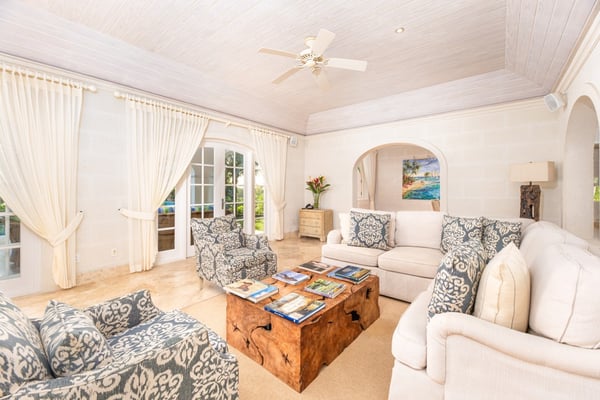 Howzat! is an immaculately maintained executive six-bedroom, six-bathroom villa offering unobstructed views across the 13th fairway and out to the glittering west coast of Barbados. Perfectly positioned within one of the island’s most sought-after gated communities, this elegant residence combines refined Caribbean living with modern comforts, generous entertaining spaces, and access to world-class resort amenities—making it an exceptional choice for discerning holidaymakers seeking privacy, luxury, and convenience.