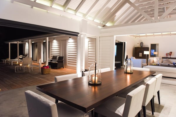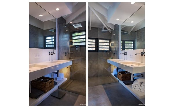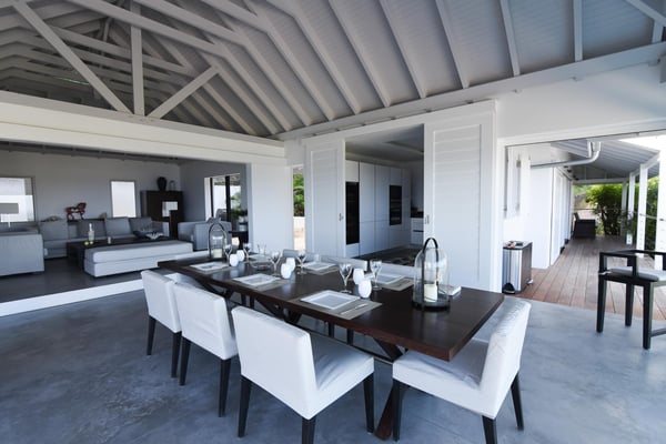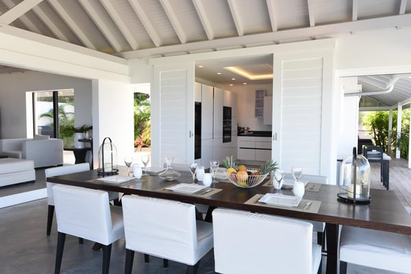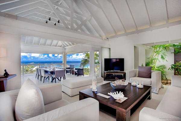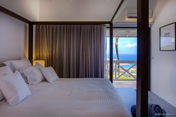 Abby is situated on the hillside of Vitet on a 32200 ft² plot next to a naturally preserved area. The view of the ocean, the islands and the lagoon is gorgeous. This spacious villa is very private. The open living and terrace are overlooking the heated pool and the sea. Access to the bedrooms is via the terrace.