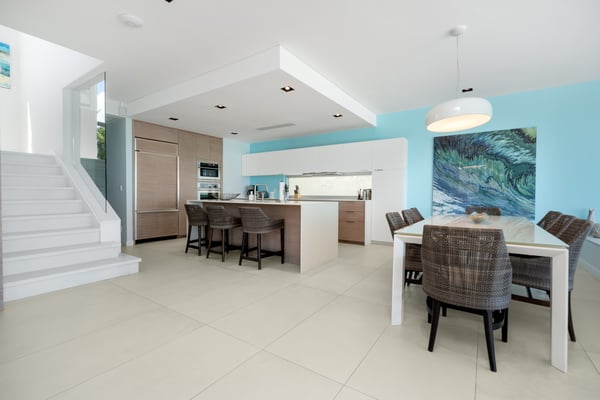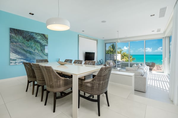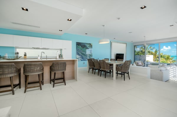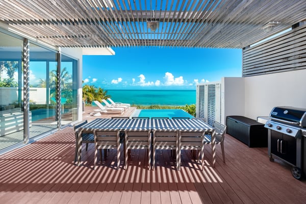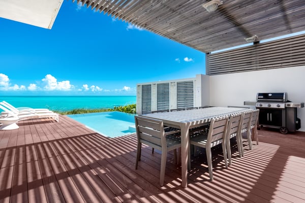 Step out onto your private sun deck and dip into the private infinity pool. Soak up the island’s warm sun while enjoying the perfect balance of indoor and outdoor living. Built just steps from the Atlantic Ocean, Eos Villa is the ultimate Turks and Caicos vacation home. Enjoy three levels of modern luxury accommodations that encompass over 6,000 square feet. With five bedrooms, five and a half baths, and plenty of sitting rooms, there’s plenty of space for families and friends. Level 1 combines two bedrooms, two baths, and a family media room for relaxation and enjoyment. Step out onto the private garden terraces and enjoy the spectacular island sunsets. Level 2 adds the perfect elements of indoor-outdoor living. A state-of-the-art kitchen and a chef's preparation pantry add a touch of gourmet flair. Open the wall-to-wall sliding glass doors and step into your own private infinity pool with breathtaking views overlooking Long Bay. Relax in one of three primary suites and step onto your own private terrace that overlooks the private infinity pool. Level 3 offers an oceanfront grand primary suite and a second primary suite with spectacular views overlooking Long Bay – each with its own private baths. Wake in the morning and gaze out at the sparkling turquoise waters. The villa offers the added convenience of a villa attendant available from Monday to Saturday, dedicating 3-4 hours each day to meet your service requirements. This service encompasses daily light housekeeping, bed and room preparation, towel replacement, kitchen cleaning, and, in the middle of the week, fresh linens are provided for your utmost comfort.