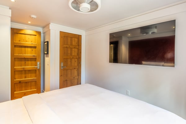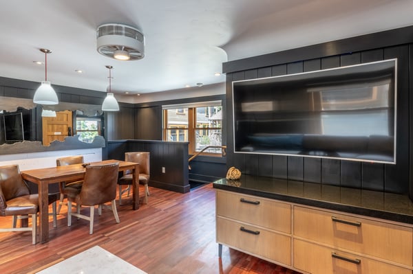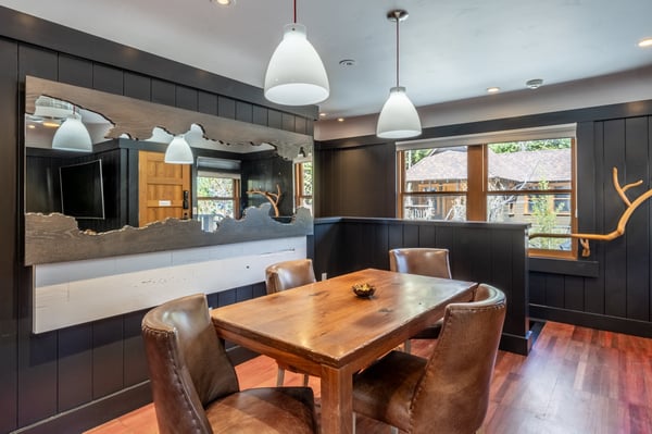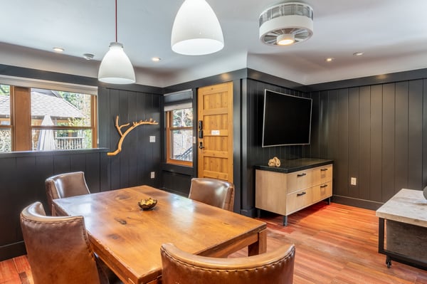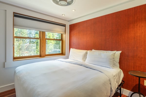 Ideal for a family or small group of friends, this charming two-level cottage sits just above the community fire pit at Cedar Crest Cottages, a historic vacation retreat nestled on forested grounds with filtered lake and mountain views. Newly renovated with tasteful, mountain lodge-inspired decor, Woodpecker Cottage features a convenient layout well-suited for a weekend escape or a season-long working vacation. In the living area, styled in autumn tones with burnt orange accents and rich hardwood floors, a wide desk with storage sits just beneath a large-screen TV, creating a seamless workspace. To unwind after a day on the lake or mountain, relax on the rich leather sectional and enjoy the smart soundbar, or take advantage of cable, a Blu-ray player or streaming capabilities. Of course, the tranquil atmosphere may call for a simple glass of wine and conversation. Downstairs, two uniquely styled bedrooms offer privacy and king-sized beds, which can be converted to two extra-long twins upon request. Small children are easily accommodated with a crib or a floor futon. Both bedrooms feature plush bedding, twin nightstands, a picture window and a wall-mounted TV. Guests share a newly remodelled bathroom on the lower level with a step-in shower and a separate powder room on the main level. A private washer and dryer, complete with complimentary laundry pods, adds convenience, especially for longer stays. Please be advised that this home does not have air conditioning. As a guest of Cedar Crest Cottages, you’ll enjoy access to the community BBQ grill and oversized fire pit with filtered lake and mountain views. In the summer, stroll to the beach for swimming, sailing and boating on the lake, or hike through the surrounding mountains. In the winter, drive less than two minutes to the family-friendly Homestead Mountain Resort, or just 25 minutes to the varied terrain of Squaw Valley. Whether you’re planning a family vacation or seeking a place to reset and rejuvenate, Woodpecker Cottage offers a peaceful place to call home in the heart of Lake Tahoe’s year-round recreation. Please be advised that the fire pit is seasonal and is not operational during the winter months due to the heavy snowfall.