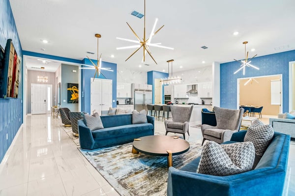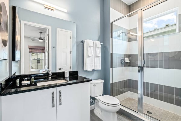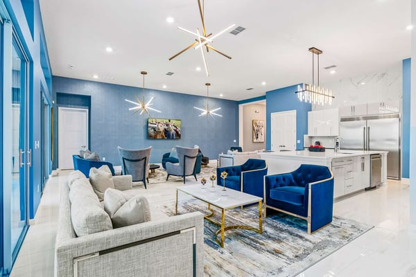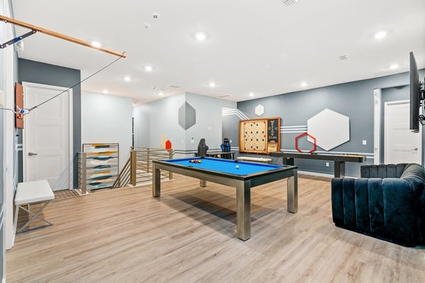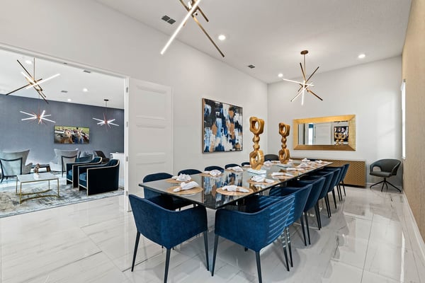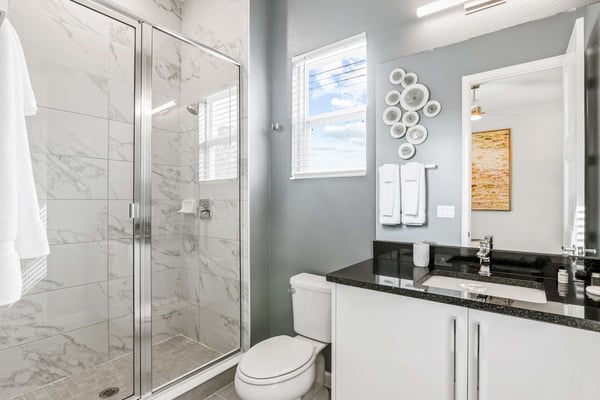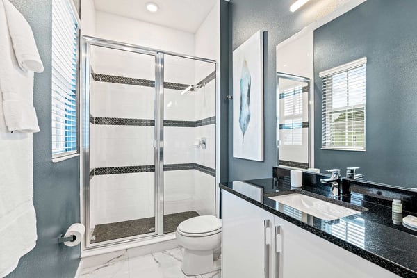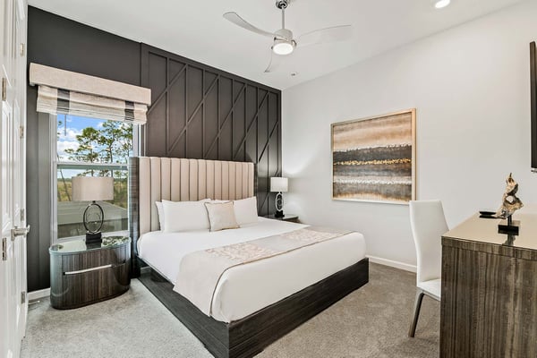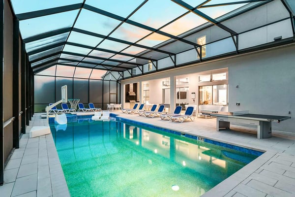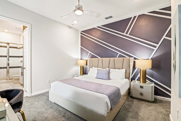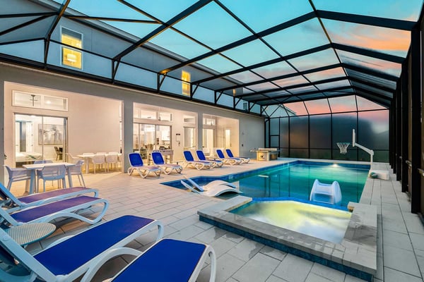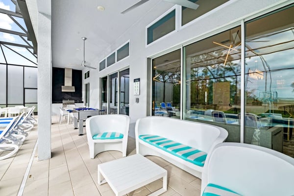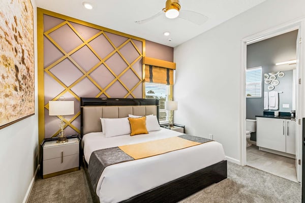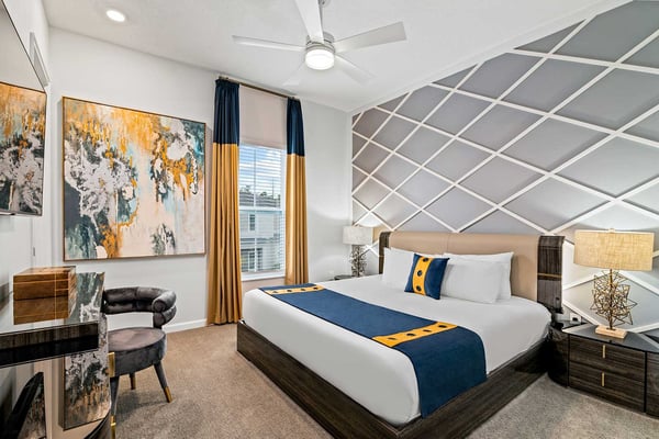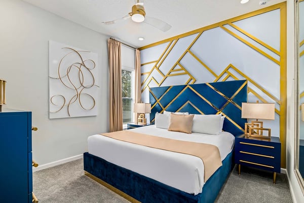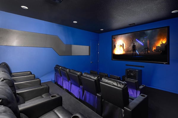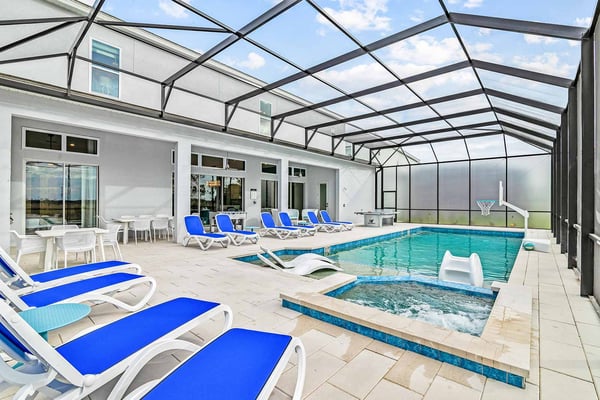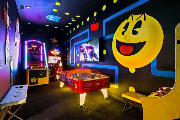 Guests staying at this accommodation will have access to the amenities at Solterra Resort. Resort amenities include tennis courts ($), a lazy river ($), fitness centre ($), covered playground, scenic grounds, as well as its 15,000-square-foot Event & Conference Center, featuring fitness classes, entertainment, food experiences, and ticketed events. This upscale, Transitional-style mansion features a massive dining/conference room for 16 guests, over-the-top entertainment, and countless amenities - including a Pirate-themed bedroom sure to unlock treasured memories your kiddos will hold onto for years to come. This sophisticated and spacious home features a massive central living space furnished with plenty of couches, chairs, and tables - perfect for socializing in a comfortable and intimate setting. The sleek and modern open kitchen is fully appointed with stainless steel appliances, custom contemporary cabinetry, and chic tones of taupe, brown, and gray. The kitchen boasts plenty of counter space and bar stool seating - an excellent spot for buffets, refreshments, or snacks. Head outdoors to discover a fabulous, fully-screened spa pool and jacuzzi. Hop into the sparkling waters and challenge the kids to a game of pool, basketball, or Foosball and corn hole on the deck. Lounge poolside on any of the cozy loungers, or take a seat on the covered patio featuring a table and chairs. Nothing beats alfresco dining in tropical Florida, and the outdoor summer kitchen is the perfect spot to show off your barbecue game. Next door, discover the first of this mansion's two fabulous game rooms. This one is home to a glittering array of much-loved arcade games, from Pac-Man and air hockey to a classic racing game. Catch the game on any of the oversized TVs throughout the house. Or better yet, play them yourself in the one-of-a-kind sports simulator room! The stadium seats, bar-style tables and chairs, skyline wall art, and life-size renderings of your favourite sports figures will put you right in the mood for some competition. The entertainment continues upstairs in the game loft, outfitted with a pool table, darts, ring toss, wall Scrabble, and more. Top off the day with movie night in your private home theatre, where your crew can sit back and relax in 11 comfy reclining chairs (and 4 minis for the little ones). Just make sure to put someone in charge of the snacks! Two eye-popping themed kids' bedrooms double as the playhouses of your kids’ dreams. The Pirates Hideaway is masterfully designed with your little scalawag in mind, complete with vivid wall art featuring ships' galleys, peering pirates, a curving escape slide, ancient maps, and portholes facing approaching galleons. The Fantasy room is full of vivid color and imagination, and will take your little ones on an exciting, magical trip along with their favorite animal characters. Against the backdrop of “dancing” brooms, mushrooms, fairies, and fish, a kid-sized ladder ascends to the elevated playhouse, and a bright, curvy slide makes for a fun escape down to the bunk bed level. Choose from nine other exquisite bedrooms with en suite baths, including two primary bedrooms conveniently located on the first floor.