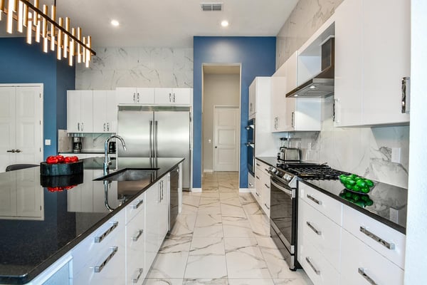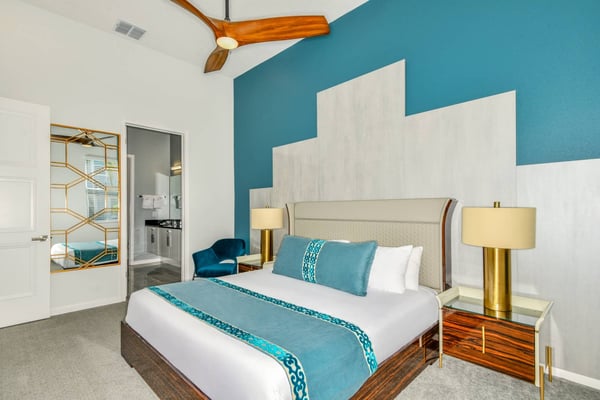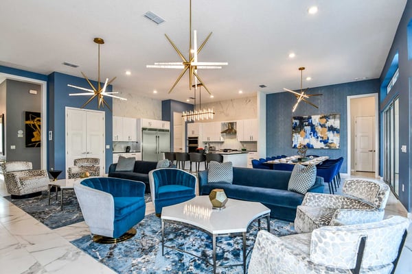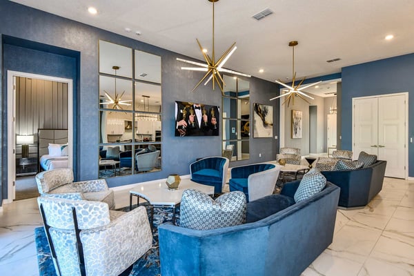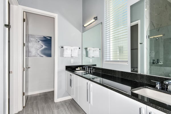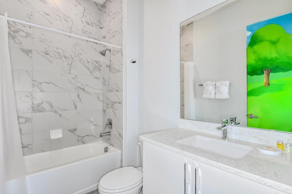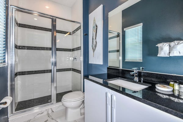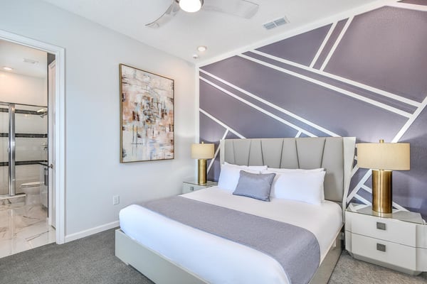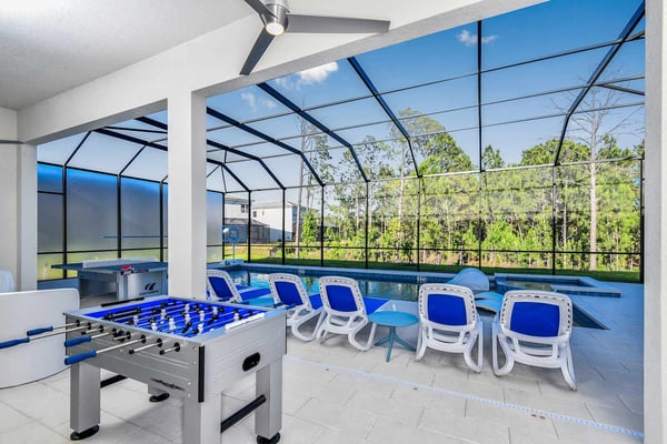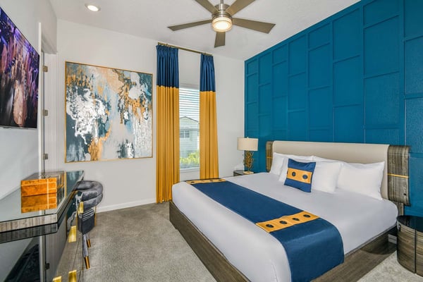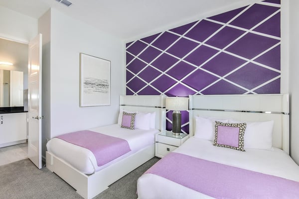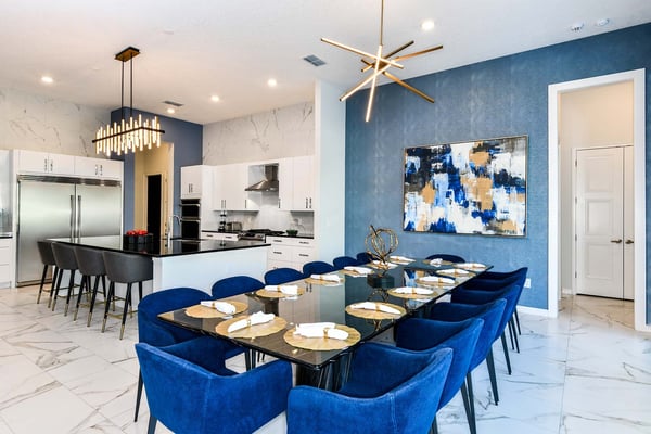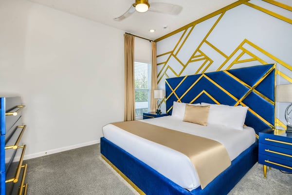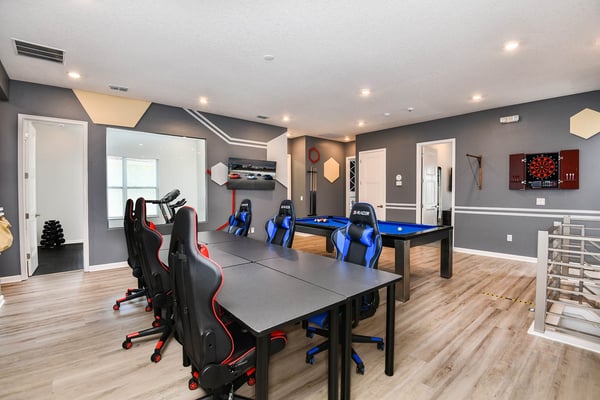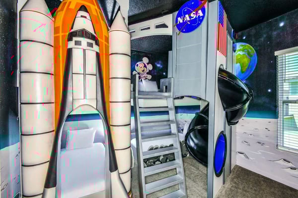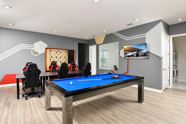 Guests staying at this accommodation will have access to the amenities at Solterra Resort. Resort amenities include tennis courts ($), a lazy river ($), fitness centre ($), covered playground, scenic grounds, as well as its 15,000-square-foot Event & Conference Center, featuring fitness classes, entertainment, food experiences, and ticketed events. Get ready to earn the title of Vacation Superhero when you book your clan this 12-bedroom luxury haven teeming with super duper amenities. Dazzle everyone with your very own movie theater, arcade room, massive private swimming pool with outdoor kitchen, and more. The kids will go bananas for the three over-the-top themed bedrooms, including one designed to thrill your little superheroes. Experience your hero’s welcome the moment you enter the grand foyer, with its high ceilings, high-end finishes, and grand Transitional-style décor. The spacious great room, with its oversized TV and comfy-yet-elegant sofa and chairs, is the heart of this 7,200-square-foot house—and the perfect place to unwind and reconnect with your gang. Food lovers (read: everyone) will be awed by the gorgeous open-plan chef’s kitchen with its sleek black-and-white cabinetry, black marble countertops, and top-end appliances. Hang out on stools at the kitchen island with coffee or cocktails, and step over to the elegant dining table when it’s time for a full dinner spread. Just outside the back door, a sprawling, private outdoor space awaits. The colossal pool has something for everyone—a mini water slide for the kids, a jacuzzi and poolside chaises for the adults, and games for all, from pool basketball to ping-pong and foosball. No need to dry off when it’s time to eat: The fabulous summer kitchen with its built-in grill and covered patio seating is just the place for Florida-style barbecue, or whatever you’re craving. Back inside, discover this mansion’s uber-cool recreation spaces. In the first-floor game room, get your fill of the arcade games you loved as a kid (and still love today)—from Pac-Man to air hockey and even a basketball game. Upstairs, the fun and games keep coming with a pool table for billiards fans, and classic games like darts, ring toss, and wall Scrabble. Can you imagine a more perfect night in than watching your favourite movies over popcorn in your very own theater? Kick back in the reclining chairs and enjoy the surround sound as you gaze up at the big screen (there’s even a row of mini recliners for the little ones). Supercharge your workout in the private gym with its top-of-the-line stationary bike, treadmill, and free weights. Need motivation? Turn on the TV and connect via app to a virtual trainer who will get you moving in no time. The kids’ jaws will drop when they discover the three wildly creative and inspiring themed bedrooms that are this mansion’s highlights. On the first floor, check out the “Superheroes Hideaway” room—the special “12th Bedroom” of the house, and easily the most elaborate and spacious. Here, your smallest guests can pretend to be the world’s mightiest heroes, sleeping in a suit of armour, sneaking through a hidden portal, and whizzing down the cool bunk bed slides. Immersive play will tire them out for bedtime, when they can dream of using their superpowers for good. Upstairs, find two more incredible themed bedrooms. In the ‘Mini Playhouse,” the kids will love visiting their favourite animated mouse in her pretty pink abode. This room is full of fantasy and fun with a bright blue sky overhead, hidden bunk beds, and a polka-dot twisty slide. Next door in the ‘Shuttle Mission” room, little space fans will find their dream abode. This NASA-approved bedroom and play space features cool rocket-ship bunk beds, a Milky Way sky, and a spiral slide to get back down to Earth. Sleeping here is literally out of this world! Discover nine more beautifully designed bedrooms with en suite baths—three on the first floor and six upstairs. Downstairs, find a primary bedroom with a king-size bed, a regular king bedroom, and a primary queen bedroom that features a double-door walkout to the pool area. Upstairs, discover five beautifully appointed bedrooms with cozy king-sized beds and another bedroom with two full beds. Each sleep haven caters to grown-up tastes with plush bedding, upscale Transitional-style décor, and a soothing palette comprised of taupes, grays, and blues.