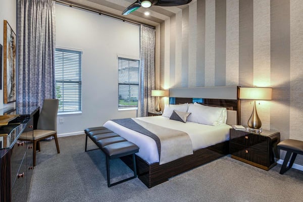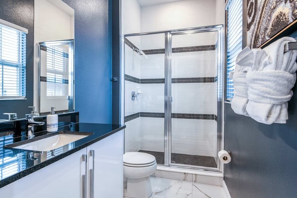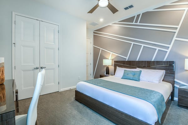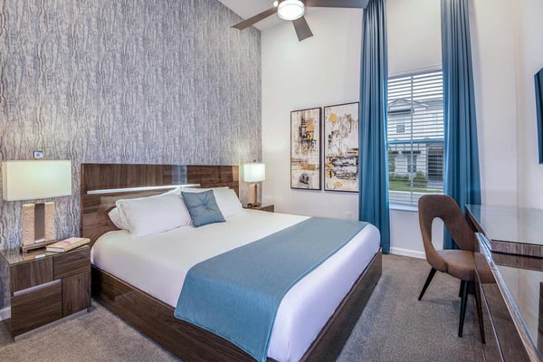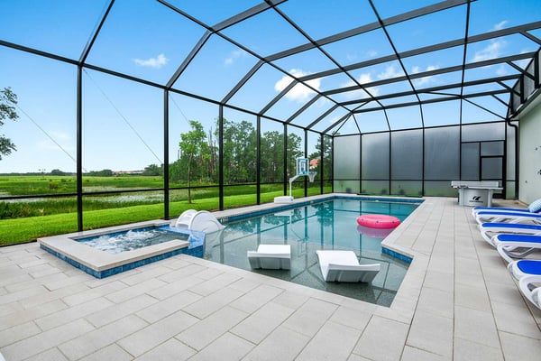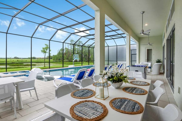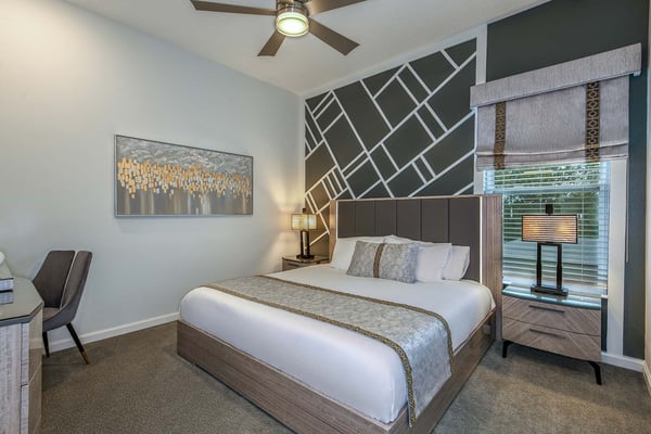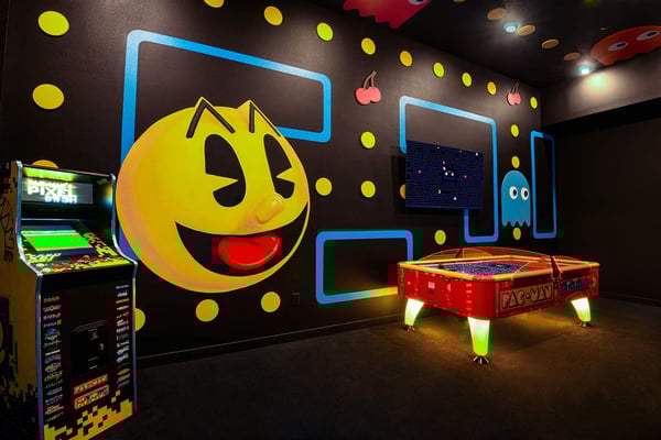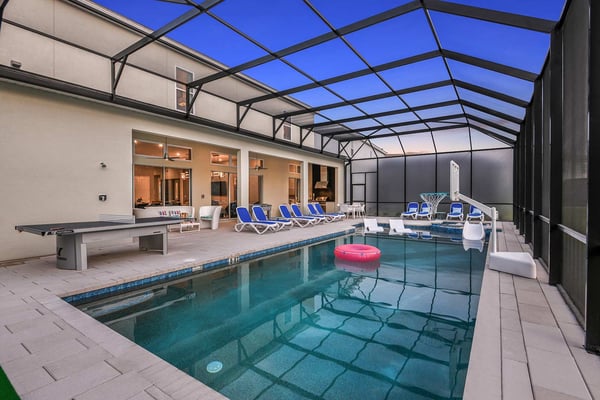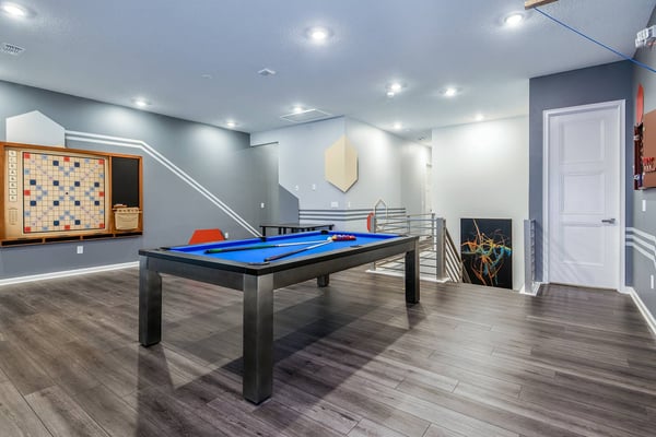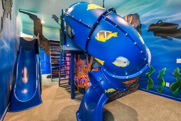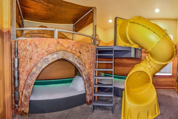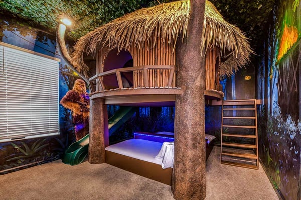 Guests staying at this accommodation will have access to the amenities at Solterra Resort. Resort amenities include tennis courts ($), a lazy river ($), fitness centre ($), covered playground, scenic grounds, as well as its 15,000-square-foot Event & Conference Center, featuring fitness classes, entertainment, food experiences, and ticketed events. Dive into endless fun in your private pool oasis, complete with outdoor games like foosball, poolside basketball, and a mini putt. Inside, challenge your fam or friends to a game of pool and darts in the game loft, or hit up the full arcade and score big at air hockey, racing games, and Pac-Man basketball. Come nighttime, immerse yourself in fantasy with two sci-fi-themed bedrooms and an under-the-sea themed retreat. Your tour begins in the graceful, high-ceilinged foyer, which leads to a gorgeous great room at the heart of the house. Unwind with your gang amid the comfy sofas, chairs, and big-screen TV - and soak in the effortless elegance and earthy tones of the Organic Modern décor. Whip up good times and great food in the fully equipped chef's kitchen, which has a light, airy feel with beautiful stone countertops, stainless steel appliances, custom deep-blue cabinetry, and gleaming oak floors. Linger over breakfast or a snack at the roomy kitchen island, or set up the long dining table for a complete feast. If joysticks are your sporting gear of choice, the arcade room will be your personal paradise. In this super cool entertainment hub, you can take your pick of favourite arcade games, from Pac-Man to air hockey and even a classic smash-up racing game. The sunshine is calling - so head outside for a dip in the colossal pool, which is enclosed within fancy privacy glass. Take a soak in the spillover spa, stretch out on a lounge chair, or get your game on with pool basketball, ping-pong, or foosball. There’s even a mini water slide for the kids. Let the pool party continue through lunch and dinnertime: Fire up the grill in your fabulous summer kitchen, and linger over your meal on the covered lanai with a shaded table that seats a crowd. Back inside, find another entertainment epicentre just upstairs. The spacious game loft boasts a pool table, dart board, ring toss, and wall Scrabble. With your own private home theatre, movie night is an epic occasion. Kick back in the comfy reclining chairs (the first row is custom-made just for kids), munch on popcorn, and enjoy a flick on the big screen, complete with surround sound. While you're already sweaty, squeeze in a workout in your home gym, which plays host to best-in-class machinery like a stationary bike, Peloton Treadmill, and free weights. Best of all, this house has exactly what the kids and tweens have been dreaming about since the moment you said, “We’re going to Florida”: three incredible themed bedrooms. Upstairs, the first of two amazing space-themed digs is the Galaxy Room, which will transport the kids to an incredible forest moon, complete with mountains in the distance and a green jungle overhead. They’ll hide, play, and finally sleep in their treehouse bunk beds, then use the twisty slide to transport happily back to earth. The second out-of-this-world haven is the Secret Planet room, where the kids can imagine themselves on a yellow planet in a galaxy far, far away. Vivid wall art, ladders, and slides will inspire immersive play, while cozy bunk beds hidden within space machinery will have them dreaming of starship battles where the good guys always win. Finally, on the ground floor, you’ll find the Undersea Adventure room, this home’s special “12th Bedroom” (and easily its most over-the-top and spacious). Stepping inside is like diving to the bottom of the ocean to discover a mesmerizing underwater paradise. Up to six lucky kids will feel like they’re sleeping on the ocean floor thanks to the three comfy bunk beds that are tucked away behind kelp and sand, with a perfect view of the surrounding sea life Nine additional grown-up bedrooms with en suite bathrooms are spread out on the first and second floors—all featuring soothing and sophisticated Organic Modern décor. On the first floor, discover three conveniently located sanctuaries, including two primary bedrooms with king-size beds, and a primary queen bedroom with a double door walkout to the pool area. On the second floor, find six more luxe bedrooms for adults, each featuring a king bed or two full beds, high-end furnishings, and an en suite bath with plush amenities.
