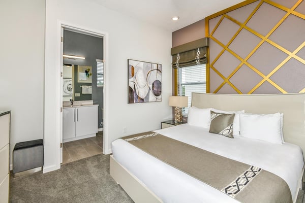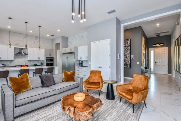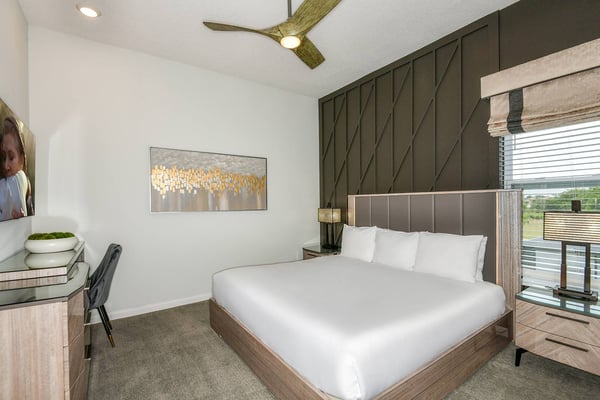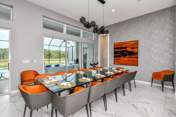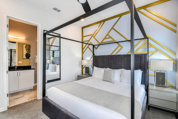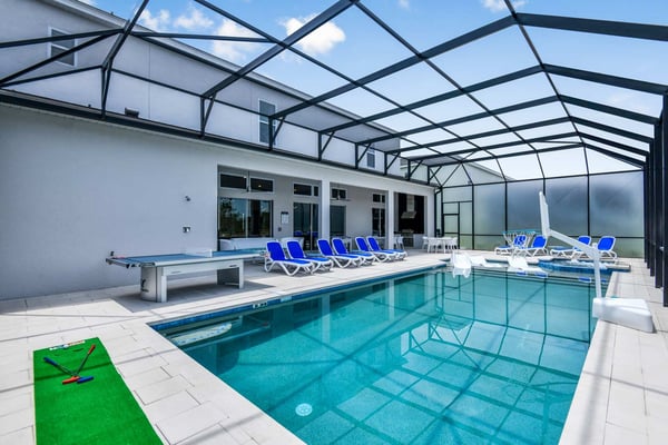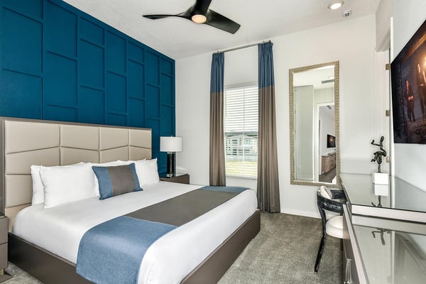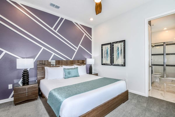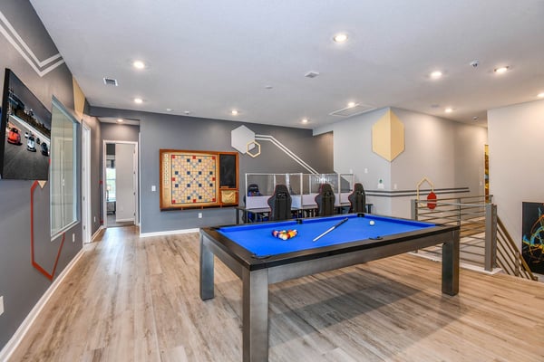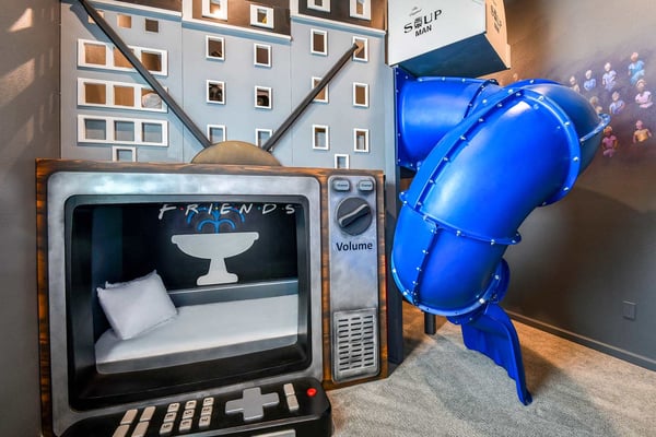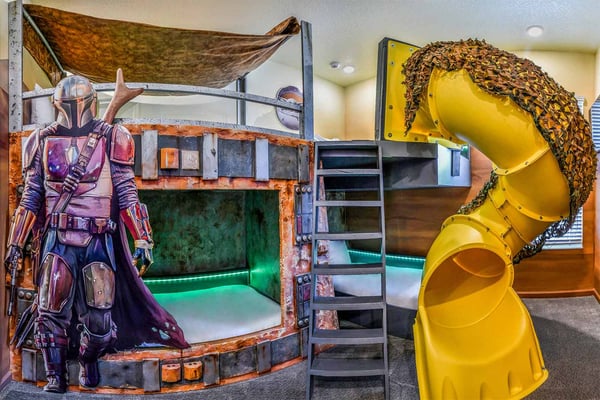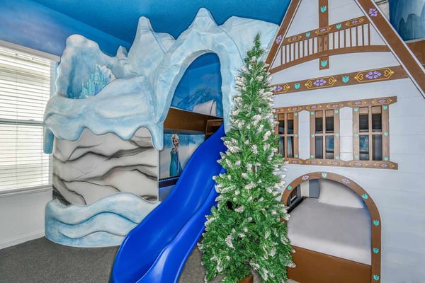 Guests staying at this accommodation will have access to the amenities at Solterra Resort. Resort amenities include tennis courts ($), a lazy river ($), fitness centre ($), a covered playground, scenic grounds, as well as its 15,000-square-foot Event & Conference Center, featuring fitness classes, entertainment, food experiences, and ticketed events. With room for up to 34 guests, this mansion is made to dazzle with its Radio City–themed karaoke room, movie theater, massive swimming pool, and three epic-themed bedrooms, including one that will thrill TV lovers with décor that pays homage to their favorite shows of all time. Enter through the high-ceilinged grand foyer and take in the upscale yet relaxed vibe of this immaculate 7,200-square-foot home. The spacious great room - with its inviting furnishings, oversized TV, and effortlessly elegant organic modern décor - is a stunning place to gather and reconnect with your guests. Relish more gorgeous design touches in the fully equipped, open-concept chef's kitchen: custom contemporary cabinetry, marble countertops, high-end fixtures and appliances, and a sleek colour scheme of white, gray, and black come together for a sharp, modern look. Linger at the breakfast bar seats, or join your guests for a sit-down feast at the long, elegant dining table. Get ready to belt out the lyrics to your favourite songs in the most incredible karaoke backdrop you've ever seen. The garage has been transformed into a 'mini Radio City Music Hall,' complete with Art Deco décor, marquee lights, and even the theatre’s famous medallions celebrating dance, drama, and song. Step onto the stage and grab a mic - there’s even a piano for accompaniments and chic, lounge-style seating. Next door, discover the first of this mansion's two fabulous game rooms. This one is home to a glittering array of much-loved arcade games, from Pac-Man and air hockey to a classic racing game. Step outside into the Florida sunshine and make it a pool party with your gang around the colossal private swimming pool. Stretch out on a lounge chair with a drink and a good book, soak in the spillover spa, or let the fun begin with pool basketball, ping-pong, or Foosball. There’s even a kids' mini water slide to thrill the little ones. Back inside, head upstairs to find more fun surprises in the spacious game loft. Here, you can brush up on your billiards skills at the pool table, try your hand at darts or ring toss, or challenge your friends to wall Scrabble. If a relaxing movie night is more your jam, you’re in luck with a private theatre to call your own. Your guests will love sinking into the comfy reclining chairs and enjoying a favourite flick on the big screen with surround sound (and of course, a bowl of popcorn in hand). What could be more motivating than working out in your own private gym? Get in the zone with brand-new equipment, including a stationary bike and free weights. You can even turn on the TV to connect via app to a virtual trainer for guidance and inspiration. Just wait till you show your younger guests the magical themed bedrooms, which double as epic playrooms—one on the first floor and two upstairs. They’ll want to spend all their time in these creative masterpieces, each filled to the brim with wonders and surprises. First up is the TV Lovers room—the special “12th bedroom” of the house, and perhaps the most jaw-dropping with its elaborate design and expansive layout. From corner to corner, you’ll be immersed in beloved episodes from classic TV shows with life-size characters on the wall and renderings of famous scenes and settings. Kids (or kids at heart—this room appeals to grownups, too!) can sleep inside a TV set in one of three hidden bunk beds. A curvy blue slide adds even more whimsical fun. Upstairs, in the Desert Fantasy room, kids can imagine themselves as heroes on a yellow planet in a galaxy far away. Vivid wall art, ladders, and slides will inspire hours of play, while secret, tucked-away bunk beds will have them dreaming of starship battles where the good guys always win. In the Enchanted Forest room, the little ones will love exploring an Alpine wonderland of hidden cottages (aka bunk beds), ladders, and fanciful wall art that will remind them of their favorite snow-princess movie. Make-believe has never been more fun, and bedtime is cozy and inviting in this Nordic fairyland. Nine additional exquisite bedrooms with en-suite baths invite your guests of all ages to retreat to their own plush oases. On the first floor, find a primary king bedroom, a regular king bedroom, and a primary queen bedroom with its own private walk-out to the pool area. Adjoining the primary bedrooms, the spacious primary baths feature the finest materials and offer tubs and showers, double sink vanities, and walk-in closets. On the second floor, choose from six more luxurious bedrooms with king and full beds—each one gorgeously appointed in organic modern design and furnishings (think sleek lines, natural textures, and a soothing palette of taupes, grays, and blues).