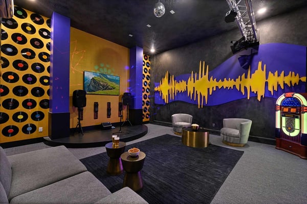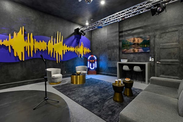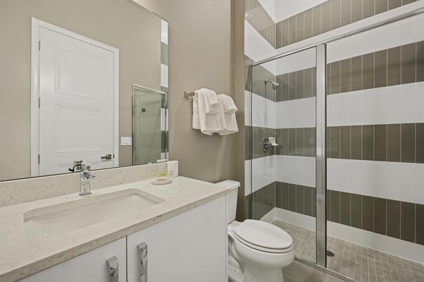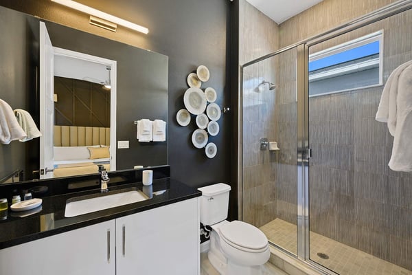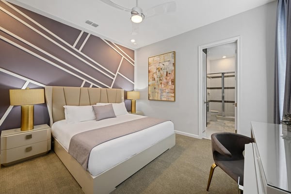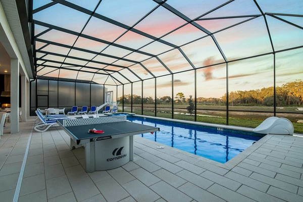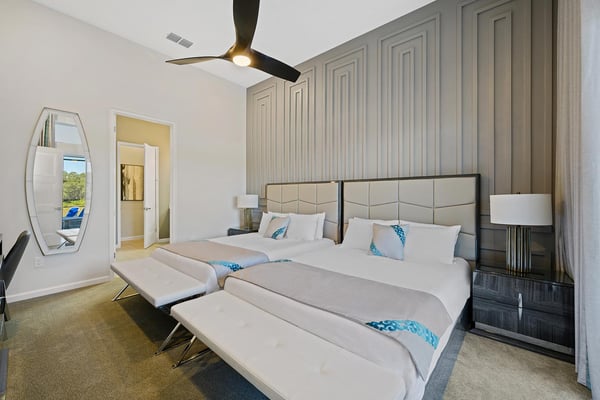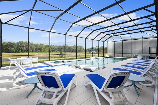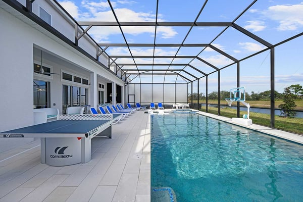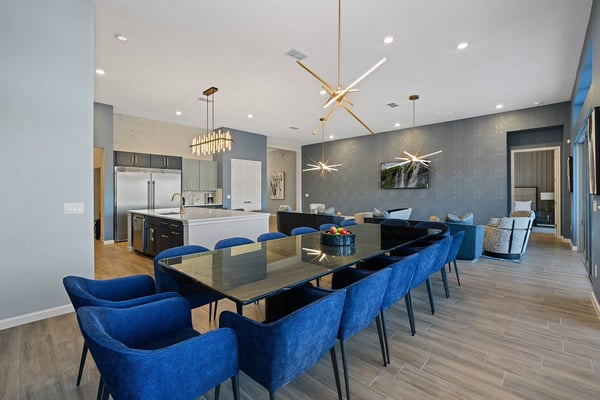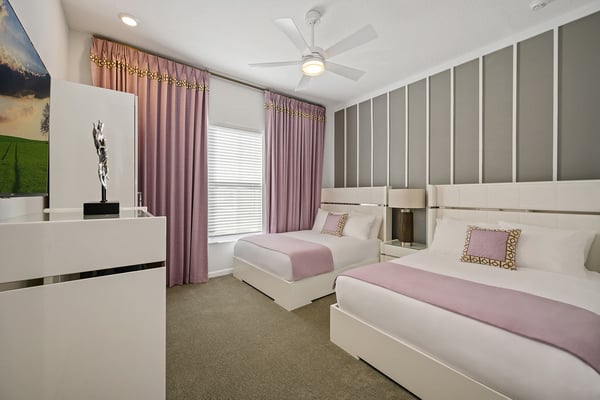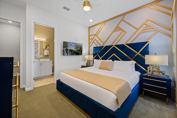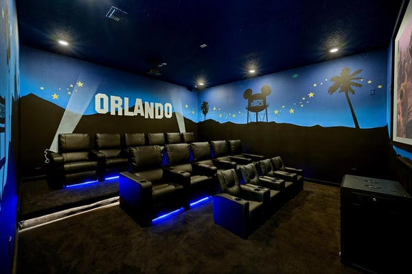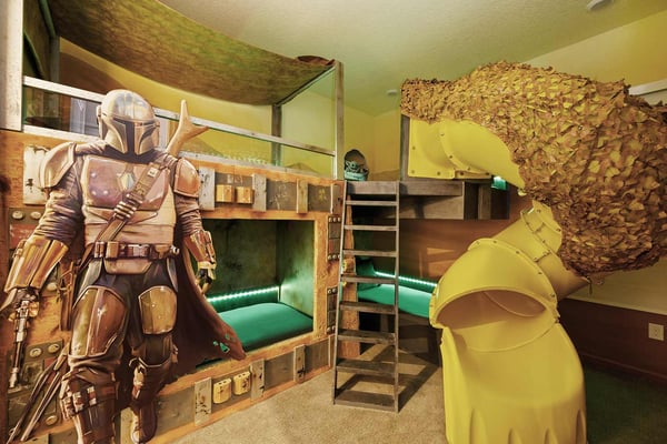Guests staying at this accommodation will have access to the amenities at Solterra Resort. Resort amenities include tennis courts ($), a lazy river ($), fitness centre ($), covered playground, scenic grounds, as well as its 15,000-square-foot Event & Conference Center, featuring fitness classes, entertainment, food experiences, and ticketed events. One step into the bright, grand entrance and you won’t be able to stop singing its praises. Warm and beautiful Transitional-style décor fill the wide open living space, replete with plush couches and chairs surrounding TVs - –perfect for a night of lounging and socializing. Set the mood (or break open the dance floor) by playing some tunes on the oversized TV. The adjacent kitchen features flawless blue cabinets, sleek white countertops, high-end gadgets and appliances, and all the tools you need to whip up the meals of your dreams. Down the hall, discover your very own Karaoke room. A star amenity in the home, this immersive space features backlit LED lighting and a full-on karaoke set-up designed to make you feel like the star of the show! You may never want to stop singing when you get a load of your private bowling alley and arcade! Get ready to rock and ‘bowl’ as you hit the lanes and toss some strikes! Between games, challenge your crew to all your favourite arcade classics - from air hockey and basketball to racing and Pac-Man. Take a rest on the couch that faces a TV - part of a cozy lounge spot that matches the fun, casual vibe in this cool space. Upstairs in the game loft, keep your adrenaline running with an epic game night of shuffleboard, pool, and darts. Rev up your heart rate and competitive spirit at the state-of-the-art gym, which features a treadmill, a stationary bike, and free weights. After all that action, sit back and enjoy a relaxing movie night on the plush, cozy recliners in the private theatre room. Outside, take advantage of the massive, screened swimming pool with a Jacuzzi. The surrounding lounge chairs, as well as the covered patio beside the outdoor kitchen, are great spots to enjoy a leisurely meal in between games of poolside foosball and ping pong. After all the epic entertainment, a good night’s sleep is in order! Situated throughout the ground floor are three of eleven bedrooms, including two primary suites that feature cozy furniture, luxe decor, and fabulous accessories—all complemented by large en suite baths. Upstairs, discover six more bedrooms with en suite bathrooms, as well as King or Full-sized beds guaranteed to give you the quality shut-eye you’re craving. The second floor also plays host to two incredible themed bedrooms. The Galaxy bedroom will ‘transport’ you to a dry, sandy planet that is truly out of this world. The kids will marvel at the hidden slide that glides from the top bunk to the desert floor. Friendly hint: If your little guests seem to have disappeared, check the secret caves or behind the space machinery. The Wintry Wonder bedroom will take you away from the hot Florida sun to a frozen tundra where you can climb up to the snowy mountain-top bunk beds and slide down an ice bridge to the soft landing below.