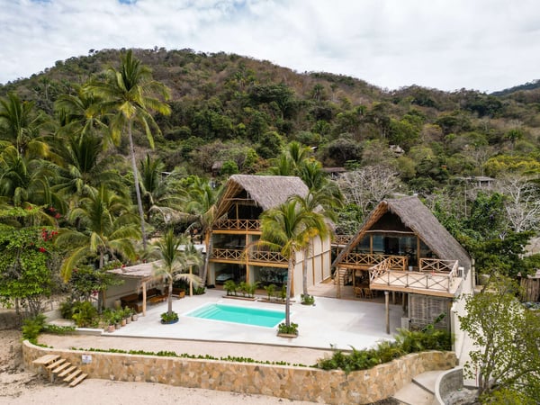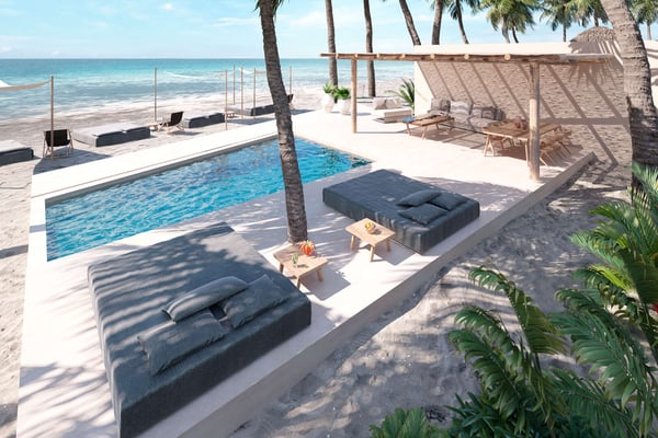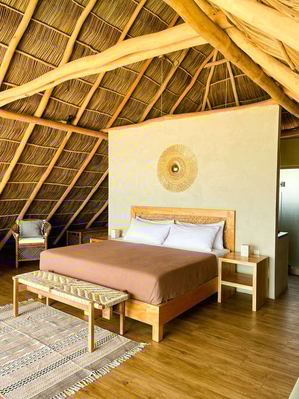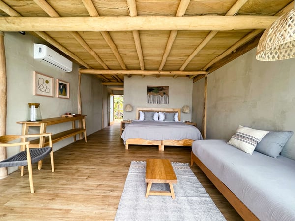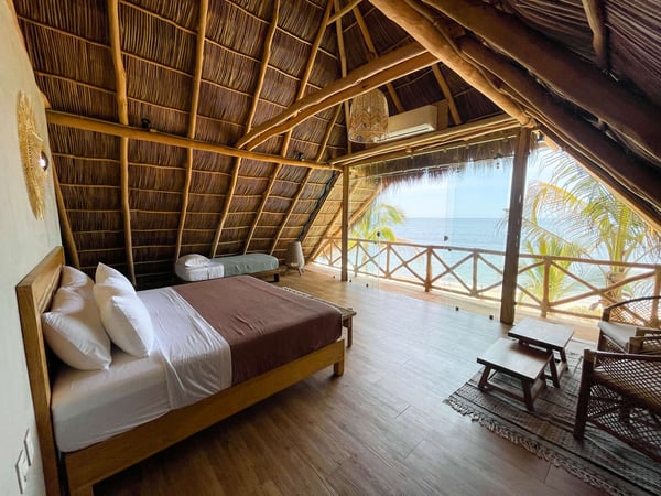 Deeply connected to the land, Mixto is designed to enhance your feeling of reconnection with nature. Earthy and sophisticated, our rooms are a private beach & jungle oasis with the frills of a boutique hotel. Each one of the levels of our Villa displays a new magical setting: at the top, two dreamlike penthouses with an elegant bed and magic palapa roof and at the lower levels, four cozy and peaceful rooms overlooking the ocean. A private deck and pool meant for rest while you contemplate the ocean and an Open-air living to enjoy your meals and social life.