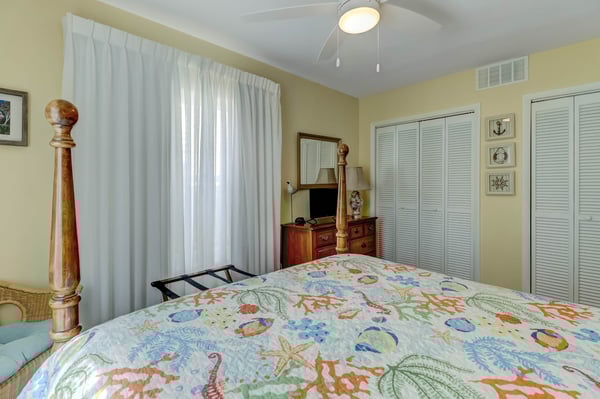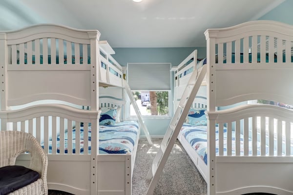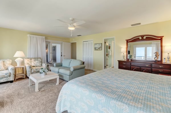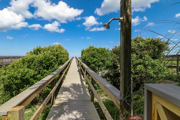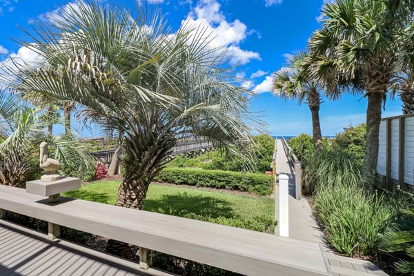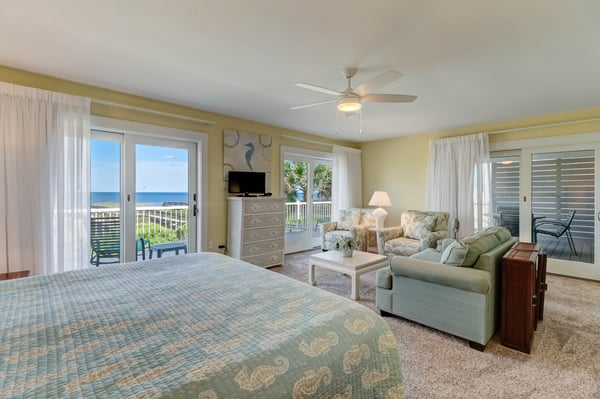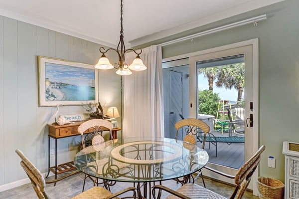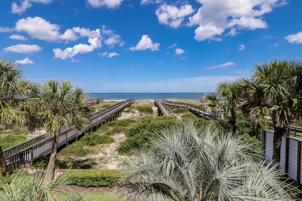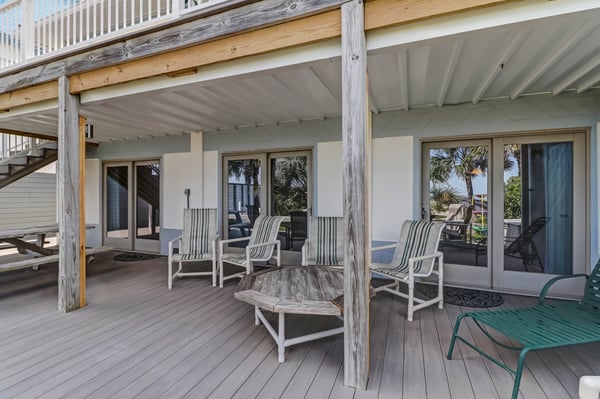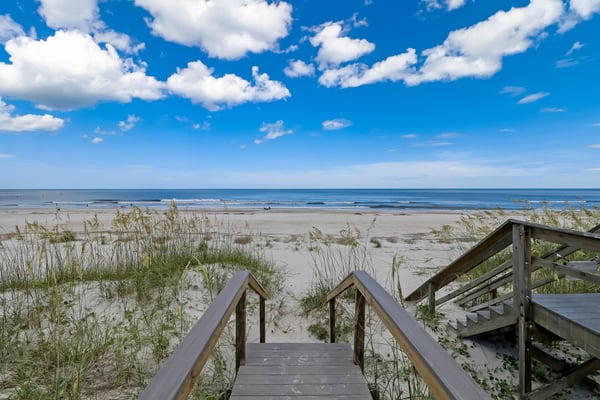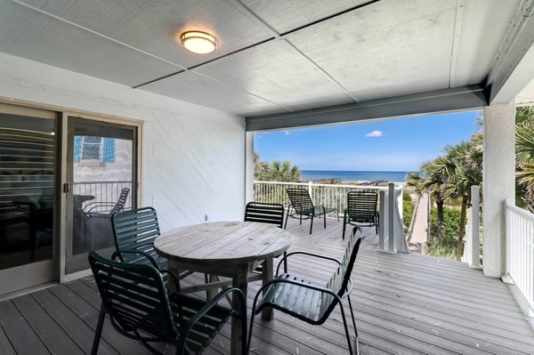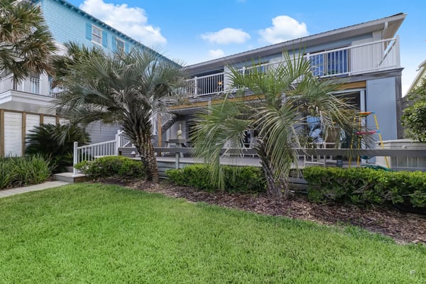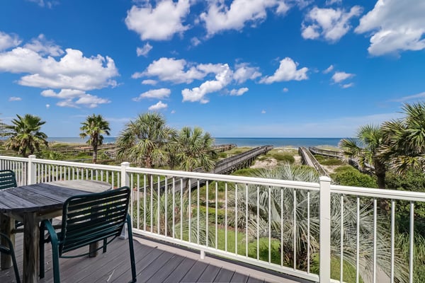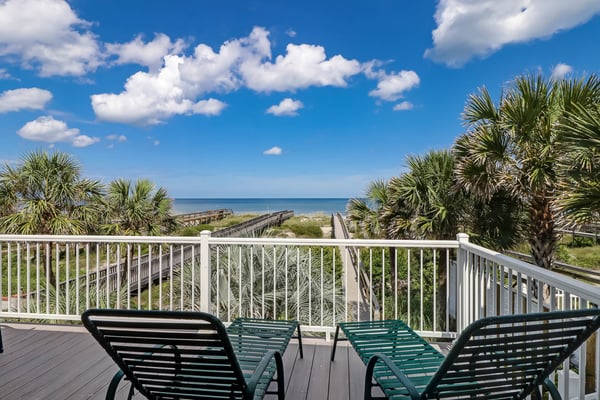Stay at this fully furnished, four-bedroom, three-bath, oceanfront beach house for an exciting and fun-filled vacation on Amelia Island. The rear deck access is available through the sliding glass doors in two bedrooms, both with King-sized beds. View magnificent sunrises or relax and sit on the deck furniture on either the upper or lower oceanfront decks with your favorite beverage to watch the sun rising over the horizon. There is a sidewalk from the back of the house to the Boardwalk. Unlike many beach homes, this home has a nice grassy backyard. Take romantic strolls on the moonlit beach. Enjoy cycling or long walks, explore the historic city of Fernandina, or just hang out on the beach. There is a gravel parking area in front for up to five vehicles.
