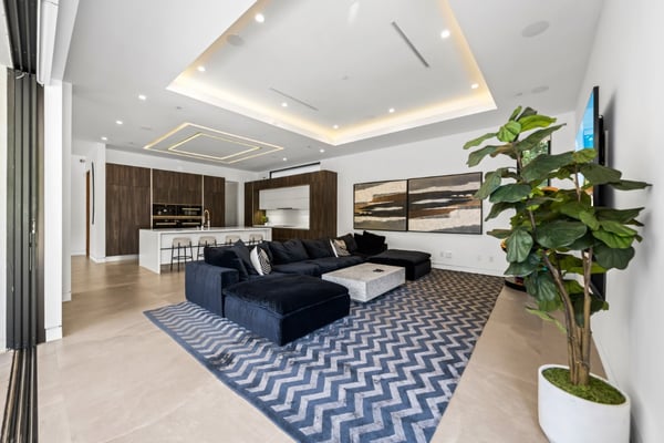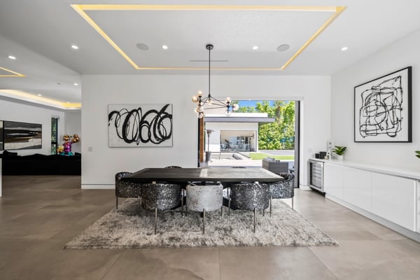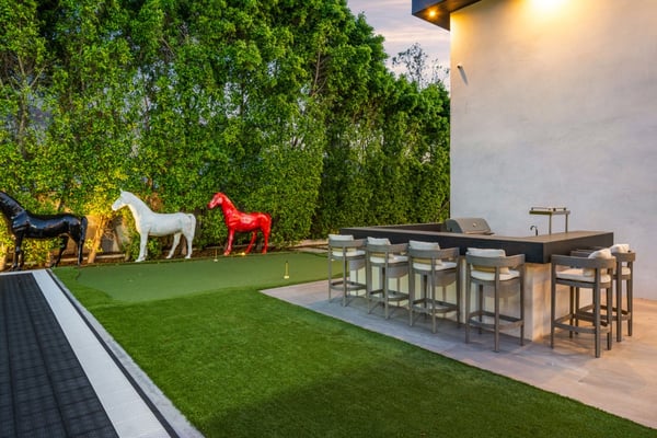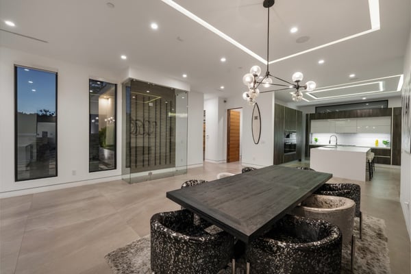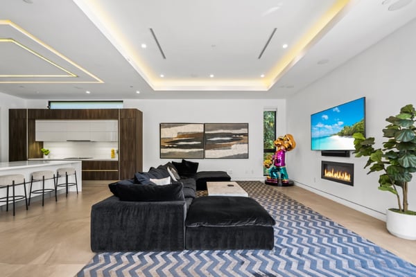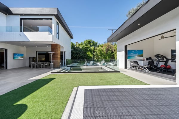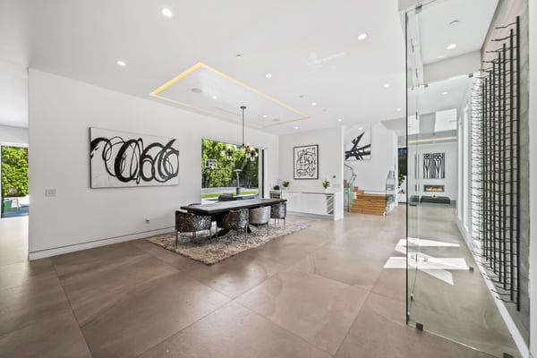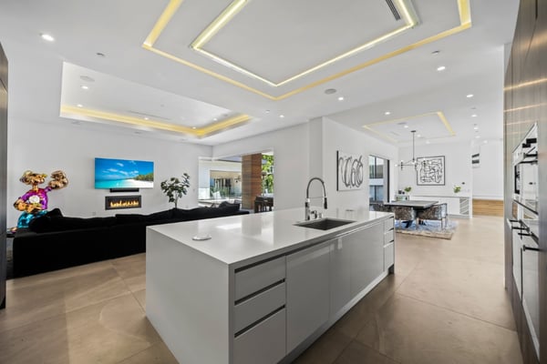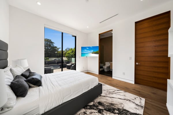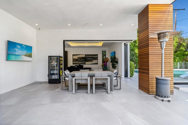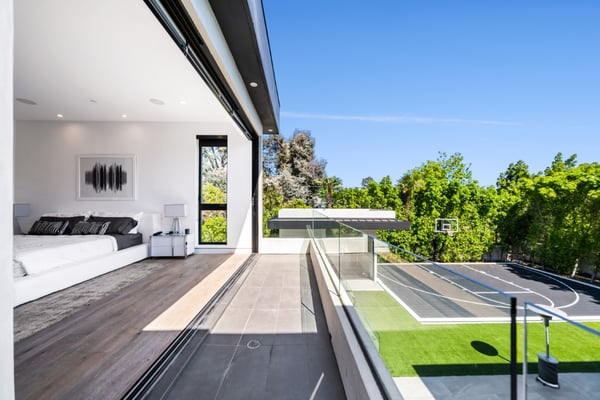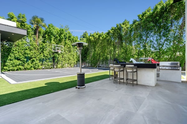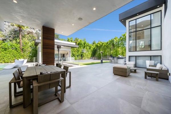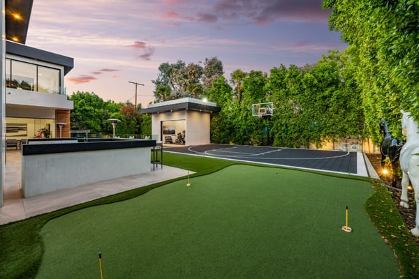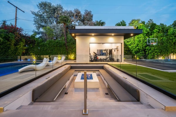 Experience unparalleled luxury and sophistication in Villa Ostrom, a stunning modern masterpiece in Encino, a wealthy neighborhood in the San Fernando Valley of Los Angeles. Built in 2017, this 5-bedroom, 6-bathroom home offers a remarkable setting perfect for photo/video productions, corporate gatherings, and special events. Villa Ostrom features an impressive array of amenities, including an infinity-edge pool, a basketball court, a gym, a home theater, a roof deck, and a guest house. The impeccably designed interior boasts high ceilings, exquisite marble and wood flooring, and a state-of-the-art kitchen with Miele appliances and a separate butler’s pantry. The opulent primary suite includes a lavish marble-tiled bathroom, creating a sanctuary of comfort and style. Outdoor entertainment areas are designed to blend seamlessly with indoor spaces. Enjoy a marble fire pit, BBQ, and pool house in a beautifully landscaped backyard. The fully gated entrance ensures privacy, while a 3-car garage and a spacious 15+ car driveway offer convenience for residents and guests alike. This magnificent retreat, Villa Ostrom, provides the perfect blend of luxury and accessibility, situated moments away from local dining, shopping, and entertainment options. Whether for an intimate gathering or a grand event, this home is the epitome of modern elegance and sophistication.