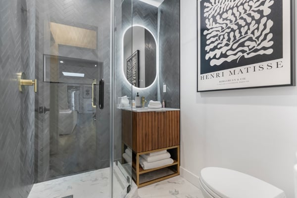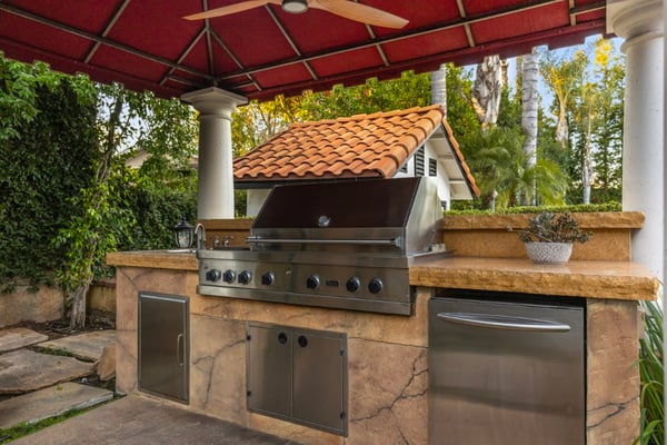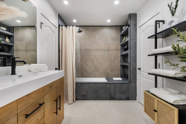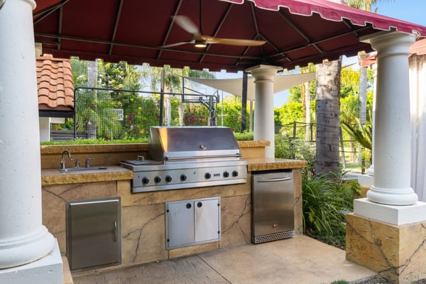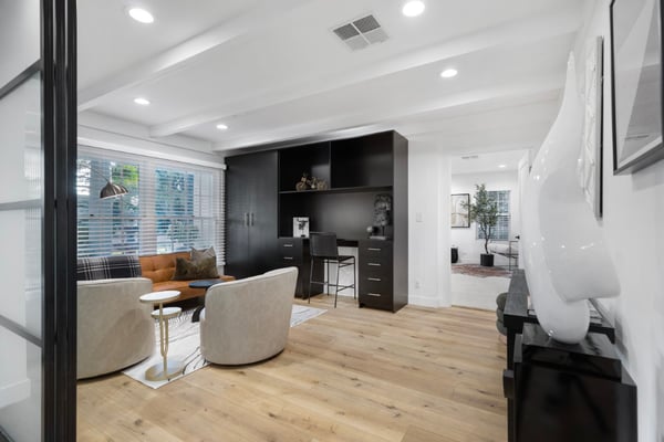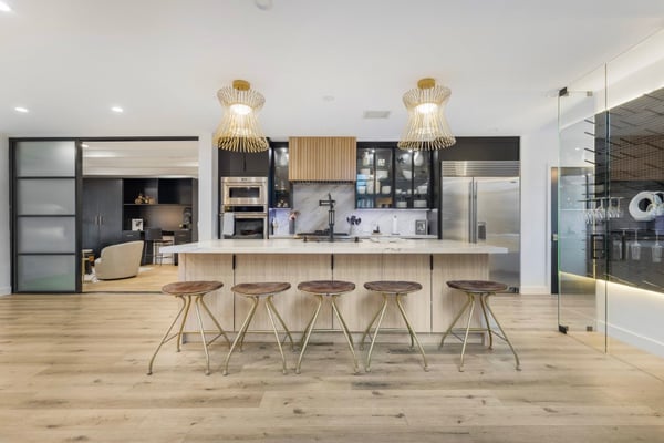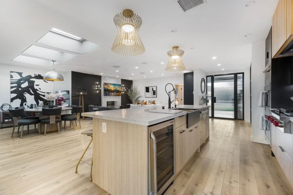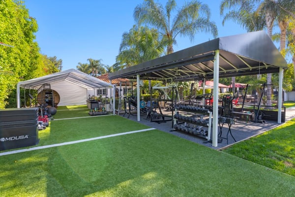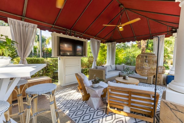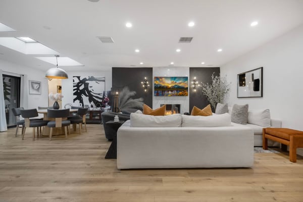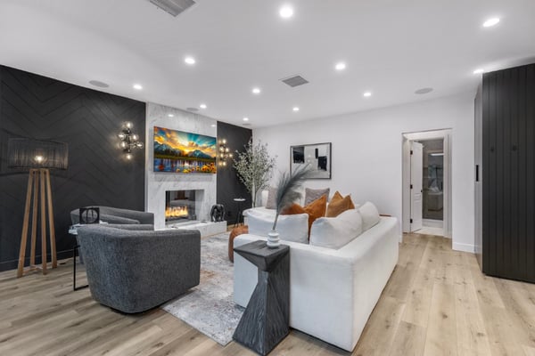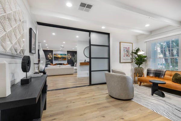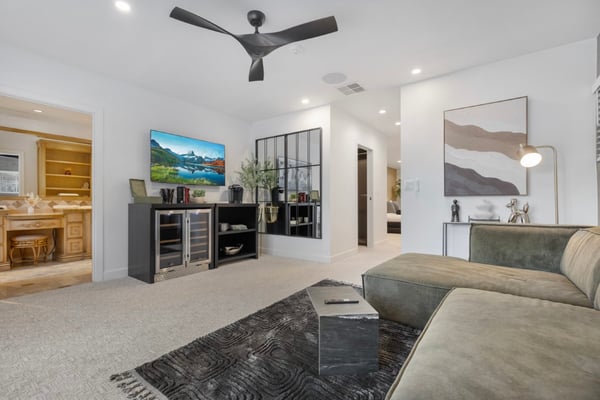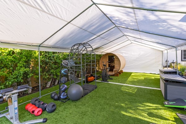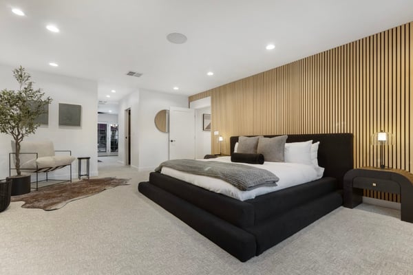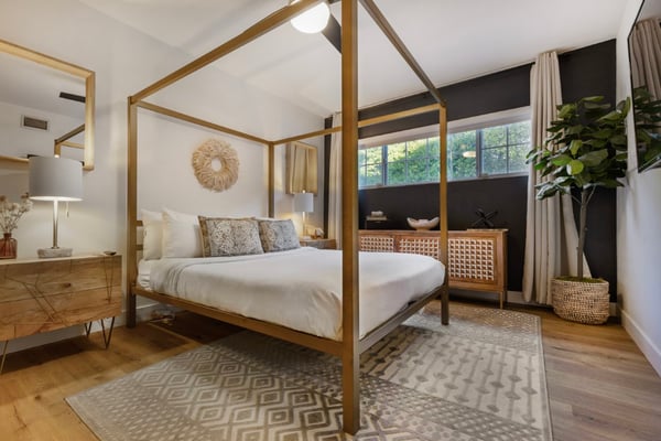 Step into the backyard and discover your own private oasis. Dive into the massive pool, complete with a mesmerizing waterfall, or lounge on the expansive grass lawn that calls for barefoot picnics and spontaneous soccer games. The outdoor area is designed for relaxation and entertainment, featuring a cozy lounge, a fully equipped bar, and a BBQ grill for those perfect evenings under the California sky. Why go out when all the entertainment you could ask for is right at your fingertips? Challenge your friends to a game of basketball on the full court, share laughs over foosball, or jump to new heights on the trampoline. For movie lovers, our theatre room promises unforgettable movie nights with your favourite films. Inside, the modern aesthetic combined with comfortable furnishings creates a welcoming atmosphere where everyone feels at home. Each space is thoughtfully designed to ensure your stay is as relaxing as it is enjoyable. With its private, gated entrance, you're invited into a world where your comfort and enjoyment are our top priorities. Erwin Estate isn't just a place to stay—it's a place to play, relax, and make memories. Whether you're looking for a fun-filled family getaway, a retreat with friends, or a serene spot to unwind, our home in Woodland Hills is the perfect backdrop for your next adventure. Please note: no garage access HSR25-001903