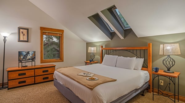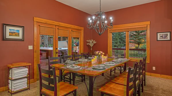 Ski Butlers offers you the best rental experience in the industry. No more lines. Ski Butlers is a full-service ski and snowboard company that delivers the equipment to you. Contact a villa specialist for more information. Privacy meets mountain charm at the charming Bystone Villa Retreat on a wooded lot in the exclusive Christie Heights neighbourhood. Stone accents and arched windows on the exterior of the home add an instant wow factor and appeal to this quaint home just minutes from historic downtown Breckenridge. Newly redecorated on the inside in a contemporary mountain style with tile floors, warm faux finish painting, and beautiful woodwork, this home is a perfect home base for your mountain vacation. Convenient to everything – minutes to town, Nordic trails, and the Peak 8 mountain base, this home offers something for everyone. Cozy up in the bright great room on leather couches and armchairs by the fireplace and flat-screen TV and recap the day’s adventures. The open kitchen is a cook’s dream with custom cabinetry, beautiful countertops, a 6-burner cooktop, and a center island. Bar seating allows guests a place to chat with the chef or enjoy coffee in the morning. An elegant dining area nearby seats eight, with French doors that open to the patio area for summer dining and grilling. Warm yourself up by the fire pit or relax in the hot tub under the Colorado nighttime sky. On the main level is a split king suite (or 2 XL twins) with plenty of natural light and a beautiful private bathroom. On the upper level is the spacious primary suite with a king bed, sitting area, TV, skylights, private deck, and additional queen sleeper sofa. The beautifully remodeled ensuite bath has a soaking tub, a separate walk-in shower, and dual sinks. Another king bedroom is nearby, sharing a hall bath with the bunk room with 4 twin beds the kids will love. Other amenities include a 2-bay garage with parking for 5 cars total, a washer and dryer, an easy walk to the free shuttle to Peak 8, and a short walk to the Nordic center for XC skiing. Please note that street parking is prohibited. This home is pet-friendly with an additional fee and written approval. Please contact us for details. 4-WHEEL DRIVE RECOMMENDED in winter months. Regretfully, weddings and events are not permitted. This property has WIFI and come fully stocked with paper products (paper towels, toilet paper, tissues), bathroom toiletries (shampoo, conditioner, body wash, hand soap), and detergents (dish, dishwasher, and laundry) as well as clean bed linens and towels. In addition, the kitchens are stocked with aluminum foil, plastic wrap, trash bags, sponges, soap, salt and pepper, coffee, tea, cookware, bakeware, dishes, glasses, utensils, and standard small appliances. This home does not have air conditioning. Colorado's cool summer nights will keep this home comfortable by opening windows after the sun goes down, and then closing the windows and blinds during the day. Utilizing the overhead fans, if available, keeps airflow moving, and additional floor fans can be found in many bedroom closets. Can't live without it? A/C units may be available for rent for an additional fee. Your Safe Home Guarantee: cleaned to the highest standards following the VRMA Safe Home guidelines and using cleaning products recommended by the CDC. Bystone Villa Retreat Town of Breckenridge Business License No: 45451001 2,900 Sq. ft.