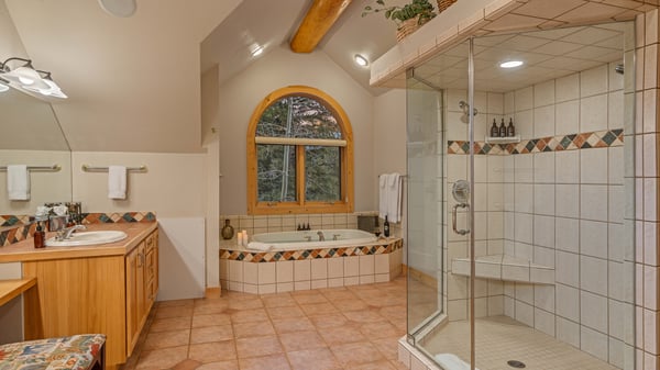 Bedroom 1, Upper Level - Primary ensuite with dual vanities, tub, and large walk-in showerBedroom 1, Upper Level - Primary ensuite with dual vanities, tub, and large walk-in shower