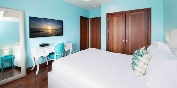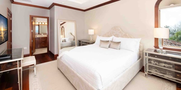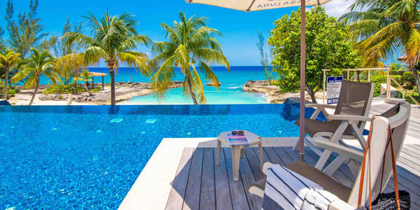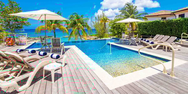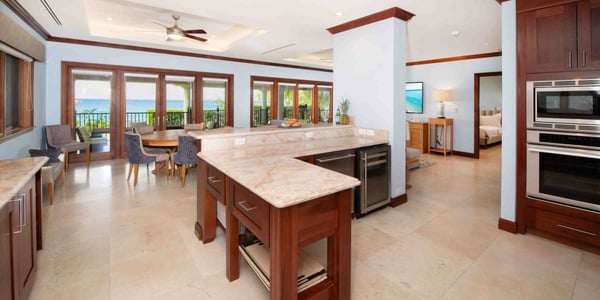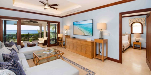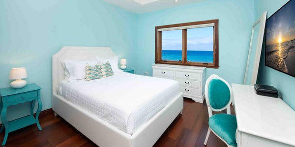 Welcome to Casa Luna, a luxurious seaside residential resort nestled along the coastline just south of Seven Mile Beach. Inspired by Tuscan architecture, Casa Luna blends modern luxury living with award-winning landscaping design with onsite horticulturist to create a secluded Caribbean oasis to call your very own. Casa Luna appeals to travelers who are considering a stand-alone luxury villa but desire more resort amenities, and those who are weighing the luxury and beach quality of a Seven Mile Beach condo but opt for additional privacy and fewer tourists. Casa Luna #5 is an upscale 4-bedroom oceanfront option to experience the best of both worlds--a spacious private residence with the convenience and resort amenities of a luxury oceanfront condo. This multi-level residence offers an open-concept design, with bedroom suites on the top and ground levels. The living, dining, and kitchen are located on the main level and open onto a private ocean veranda with lounging areas. Three of the four bedroom suites have breathtaking direct ocean views. The fourth bedroom has a beautiful Juliet balcony with a garden and partial sea views. The stair landing includes a dedicated workspace perfect for those in need of working while away from home. The floor plan offers a great fit for families, multiple couples, and executives. The spacious 5,032 square feet of living space offers a rare great value as well as room to spread out to make yourself feel at home. Only 6 of the resort’s 18 villas are currently available for short-term rental. Exclusive to villa owners and guests, the gated resort's elevated infinity pool, heated spa, fitness center, and barefoot sandy cove offer plenty of private seating and chaise lounges to enjoy at the beach, by the pool, and on the private patio. The beach, pool, spa, and fitness center are all a short oceanfront walk from the veranda of Casa Luna #5. Beach Notes Casa Luna's barefoot sandy beach is lined with palm trees and sun loungers. Exclusive only to the owners and guests at Casa Luna, the beach here is never overcrowded. Unusual for a barefoot beach in Grand Cayman is the ability to snorkel and actually see marine life. Fish require corals, grasses, and rocks in which to live (and these items are not pleasant to walk on). Instead of rocks and grasses, Casa Luna's protective ironshore cove provides a haven for marine life. The larger condo resorts on Seven Mile Beach lack any underwater habitat for marine life resulting in fewer schools of fish. Given the tides and currents, you will want to exercise caution when swimming outside the protected cove. General Grand Cayman Beach Notes All beaches in Grand Cayman are technically “public” since the Queen owns up to the high water mark. The shoreline quality behind your property may vary seasonally. Ocean Debris & Sargassum Seaweed Beaches in Grand Cayman may also experience seasonal floating ocean debris and sargassum weed. Sargassum is a generally harmless floating seaweed that has increased in frequency in recent years. Although sargassum is an unsightly nuisance, it is largely seasonal in the summer. Owners make efforts to remove heavy sargassum and have the beach raked prior to your arrival. We try our best to work around mother nature.