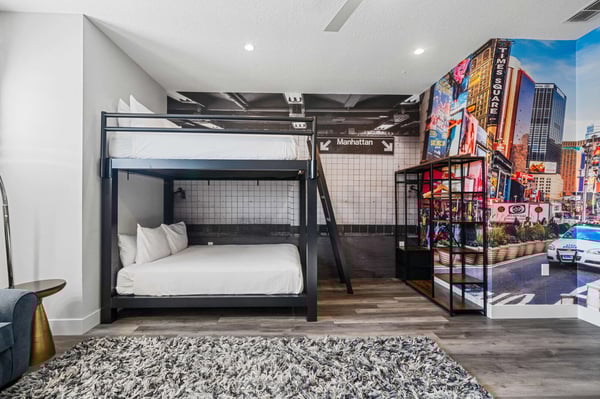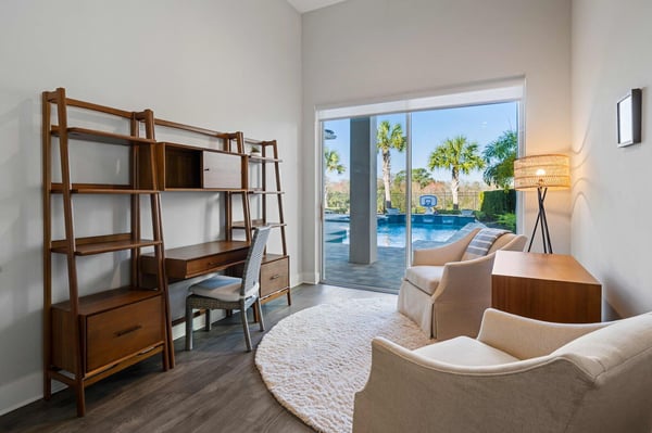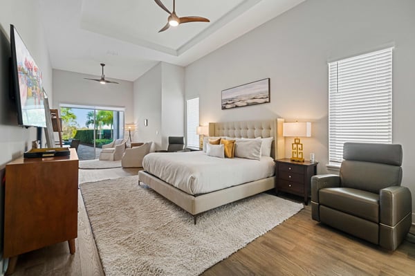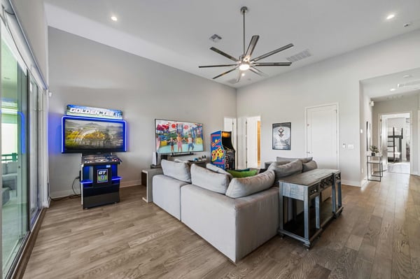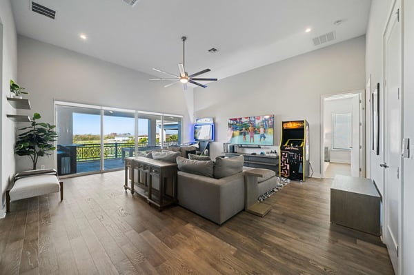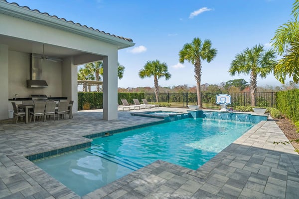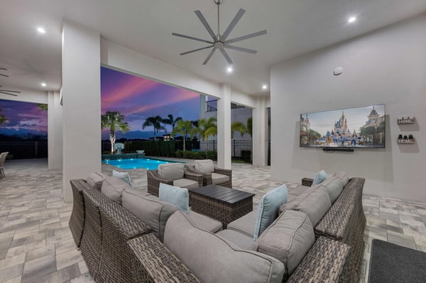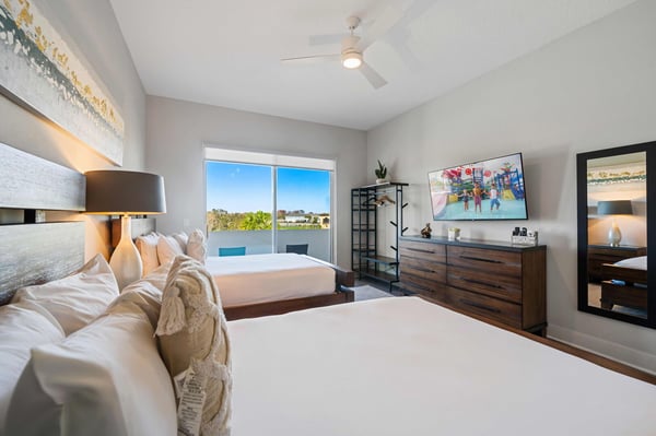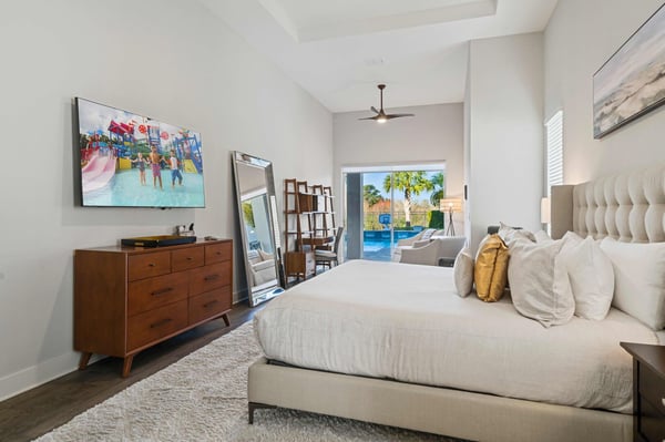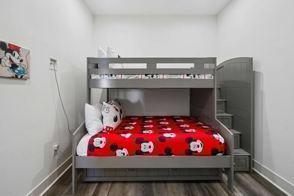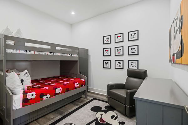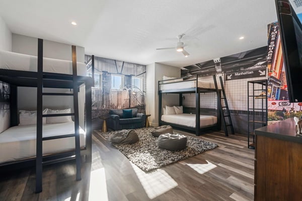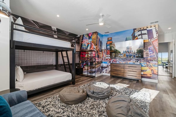 Welcome to the Silverwood Estate, an extraordinary 6-bedroom, 5-bathroom luxury estate located in the exclusive Bears Den community at Reunion Resort. Spanning over 5,161 square feet, this home offers a seamless blend of elegance and entertainment, making it the perfect destination for your next Florida getaway. With its modern finishes, thoughtfully designed spaces, and incredible amenities, the Silverwood Estate provides a sophisticated and comfortable retreat for families of all sizes. Step into the grand living area, where contemporary design meets inviting comfort. The open-concept layout features sleek modern finishes, high-end furnishings, and large windows that fill the home with natural light. The spacious living room is perfect for relaxing after a day of adventure, while the adjacent dining area offers ample seating for shared meals and memorable gatherings. The fully equipped kitchen boasts state-of-the-art appliances, generous counter space, and elegant cabinetry, making meal preparation a joy for chefs of all skill levels. Each of the six bedrooms is designed to provide a restful sanctuary, with luxurious bedding, tasteful decor, and thoughtful touches to ensure every guest feels pampered. The themed children’s bedrooms add a playful element to the home, creating a magical experience for younger guests. These unique spaces are sure to delight, sparking imagination and fun. Entertainment is a key feature of the Silverwood Estate. The loft area transforms into an exciting game room with arcade games, providing hours of fun for guests of all ages. Whether challenging each other to a friendly competition or simply relaxing with the family, this entertainment loft is a highlight of the home that everyone will love. Step outside to the home’s outdoor oasis, where the Florida sunshine and resort lifestyle come together. The back patio is a haven for relaxation, featuring a luxurious pool with stunning views of the Signature Nicklaus golf course. The summer kitchen is fully equipped for al fresco dining, making it easy to enjoy meals by the pool. Comfortable lounge seating invites you to unwind and take in the serene surroundings, whether soaking up the sun or enjoying an evening under the stars. Located in Bears Den at Reunion Resort, the Silverwood Estate offers guests access to a wide range of world-class amenities. Golf enthusiasts can enjoy the three Signature courses designed by Nicklaus, Palmer, and Watson. Families will love the resort’s 5-acre water park, multiple pools, and award-winning tennis facilities. For dining, Reunion offers a variety of on-site restaurants, ensuring that every meal is a delightful experience. Whether you’re lounging by the pool, enjoying the themed bedrooms, or spending quality time in the game room, the Silverwood Estate is a destination that combines luxury, comfort, and fun. This home offers the ultimate setting for creating cherished memories with loved ones. Book your stay today and experience the unparalleled elegance and entertainment.