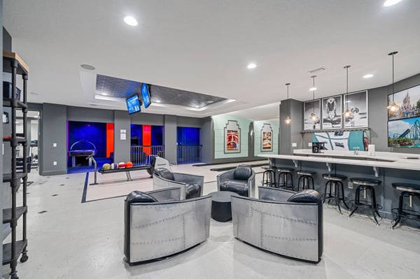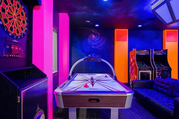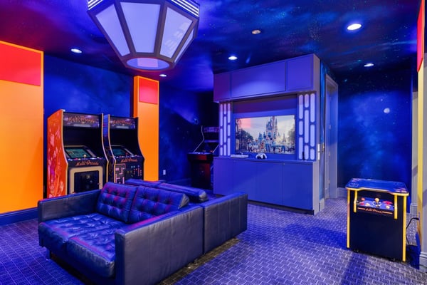 Welcome to Regal Horizon, an extraordinary luxury retreat in the prestigious Reunion Resort. Spanning an impressive 22,000 square feet, this opulent home offers 13 bedrooms, 15 bathrooms, and accommodations for up to 32 guests. From its unparalleled amenities to its sophisticated design, Regal Horizon is the epitome of high-end vacation living, making it ideal for large family gatherings, corporate retreats, or special celebrations. Every inch of this home exudes elegance and refinement. The expansive living areas are adorned with luxurious finishes and thoughtfully designed for comfort and style. The fully equipped kitchen, paired with a sleek bar, ensures all your culinary and entertaining needs are met. For golf enthusiasts, the bar features a golf simulator, offering a unique and engaging experience. Entertainment is a cornerstone of Regal Horizon. The private bowling alley is perfect for friendly competitions, while the arcade room guarantees fun for all ages. A state-of-the-art movie theater provides the perfect setting for cinematic experiences, while the private gym ensures you can maintain your fitness routine during your stay. Fans of magical adventures will adore the Harry Potter-themed bedroom suite, an immersive and whimsical retreat for guests of all ages. The outdoor spaces are equally impressive. The expansive patio is designed for both relaxation and entertainment, featuring ample seating and dining areas, a summer kitchen, and luxurious touches throughout. Whether soaking up the Florida sunshine by the pool or enjoying an evening under the stars, the outdoor area is a true haven of comfort and sophistication. Regal Horizon is more than a vacation home—it’s a lifestyle. With its blend of grandeur, modern convenience, and unrivaled amenities, this home offers an experience that is as memorable as it is unique. Guests also enjoy access to Reunion Resort’s world-class offerings, including championship golf courses, resort pools, and fine dining. Book your stay at Regal Horizon today and indulge in the ultimate luxury experience. From its unparalleled amenities to its stunning design, this home promises an unforgettable escape.
