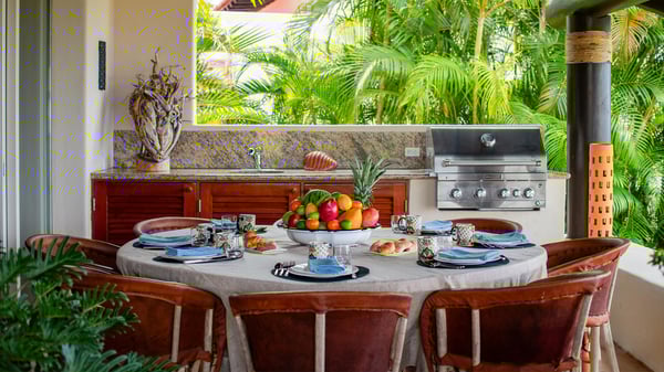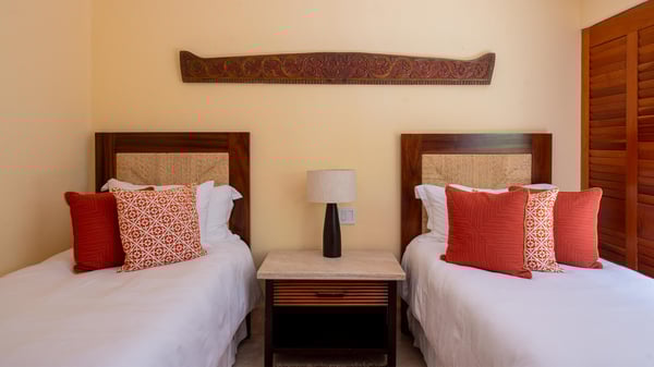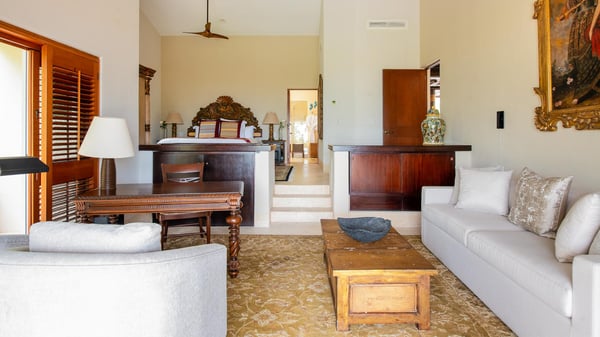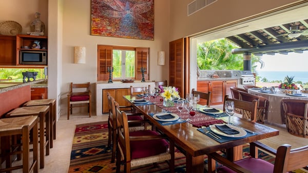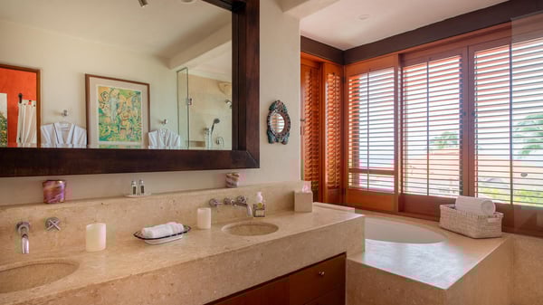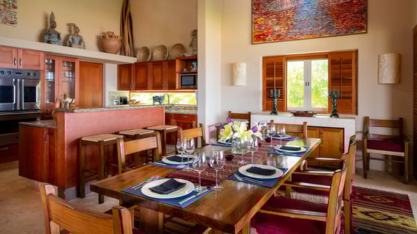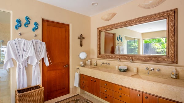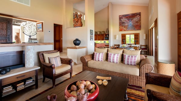 • Security Deposit: One night rental. • Guests with children may wish to note that the bedrooms are accessed via an internal courtyard. Strictly quiet hours in the community after 10pm (no loud music allowed). Penalties for noncompliance may apply. • As is typical of a home in a lush area of the tropics, wildlife and insects should be expected. This villa is regularly fumigated; however, insects are possible in outdoor areas and if doors are left open, especially during the rainy season. • Effective January 6, 2026, all Beach Clubs will implement a Minimum Food & Beverage Consumption Policy for vacation rentals only (Not Members with their guests). Please contact a Villa Specialist for exact pricing details.