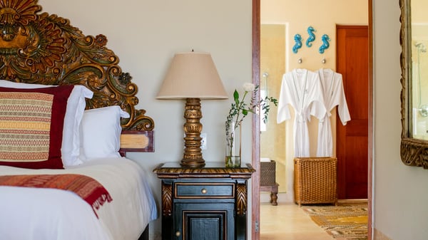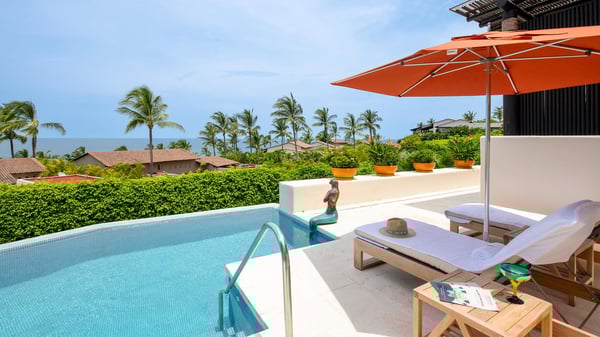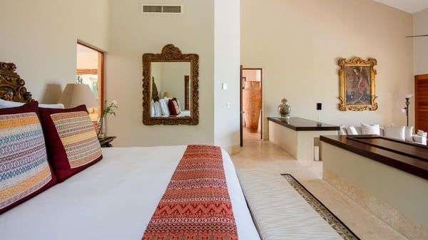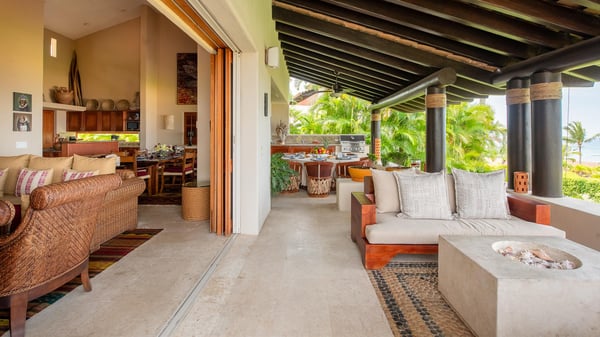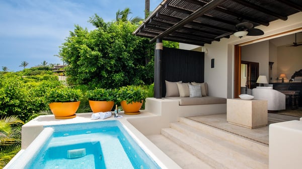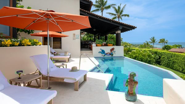 This Four Seasons private villa in Punta Mita is full of that delicious authentic Mexican magic, where local craftsmanship meets timeless understated luxury. Guests looking for a beach vacation experience that dances to the tune of the original Four Seasons Punta Mita decor and style will fall in love with this luxury villa rental … mermaids and all! Its shaded furnished veranda overlooking the ocean and palm tree views creates a warm, lived-in elegance, while every corner whispers: “you’re exactly where you should be.” Beyond, the ocean glints like a well-kept secret, framed by a tropical garden and the gentle chorus of birdsong. The service? Utterly spoiling. Complete with its trusted local housekeeper who can prepare your breakfast just as you like it. This ocean view Four Seasons Punta Mita villa is the place for languid afternoons, moonlit margaritas, and the kind of memories that only come when life slows to the rhythm of the waves.