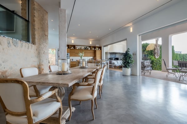 This exquisite villa in Genova offers the perfect blend of Mallorcan charm, coastal beauty, and modern luxury. Perched in an elevated position, Villa Tiera boasts breathtaking sea views from its sun-drenched terrace and sparkling swimming pool, making it a haven for relaxation. Contemporary elegance meets Mediterranean warmth at Villa Tiera. Spacious open-plan interiors feature folding glass doors that seamlessly connect to expansive terraces, framing stunning "sea-meets-sky" vistas. The sleek, modern aesthetic is softened with cosy touches, creating a relaxed holiday atmosphere. Situated in the peaceful yet exclusive neighbourhood of Genova, the villa is perfectly positioned. Palma’s vibrant city centre is just a short drive away, while the sandy beaches of Cala Major and Illetas are only 5-10 minutes by car. For nature lovers, nearby hiking trails through pine forests offer incredible coastal views. Villa Tiera's five light-filled bedrooms, spread across two floors, comfortably sleep up to 10 guests. Each features an en-suite bathroom with luxurious pebble-floor rainfall showers, and one even boasts an outdoor soaking tub with views. Select bedrooms open onto a sun-kissed terrace with loungers and shaded areas, perfect for soaking up the serene panoramas. The 13 x 5-metre pool and surrounding terrace are ideal for cooling off or enjoying Mallorca’s sunny climate. A rear garden offers a quiet, leafy retreat, while inside, a cozy sitting room with a log fire and a stylish chill-out space with an HD TV provide comfort and entertainment. A dedicated pool room with an elegant antique table adds a touch of sophistication. Whether cooking indoors in the state-of-the-art Birgit Mueller kitchen or outside in the summer kitchen with a built-in charcoal barbecue, mealtime is a pleasure. For dining out, you are within a 5-minute walk to Genova’s acclaimed restaurants or can explore Palma’s vibrant culinary scene nearby. This villa combines an unbeatable location, spectacular views, and luxurious amenities to create the ultimate Mediterranean escape. License Number: ETV/7200 / ESFCTU00000702600059956900000000000000000000etv/72007