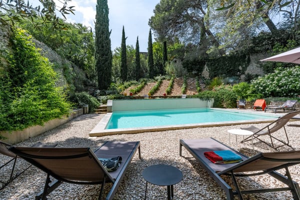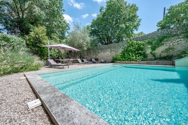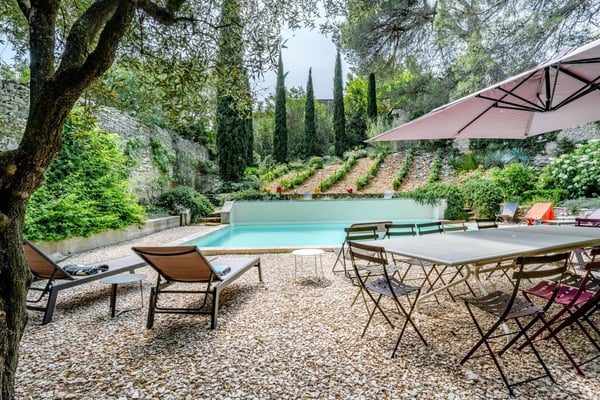 In the heart of the historic town of Villeneuve les Avignon, Le Viguier is a former cardinals' residence, completely restored, owned by the same family for the past 300 years. It is a beautiful Provencal home that features six bedrooms, each with an en-suite bathroom, air conditioning, and an amazing and very private swimming pool area.
