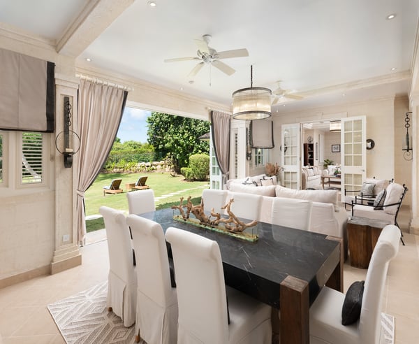 The Fairmont Royal Pavilion is one of the most prestigious resorts in Barbados. Guests will have complimentary access to the Pavilion Beach Club and restaurants. What first strikes you about Windfall is the spectacular indoor/outdoor swimming pool at the heart of the home. A retractable canopy means you can enjoy full sun, partial shade or close it completely, allowing for ultimate privacy. The pool area also has an additional bathroom for guest use. On the upper level, nestled between a private cocktail lounge with ocean views and a wet bar, Windfall has two spacious, equally sized master suites with large en-suite bathrooms, balconies and dressing areas. There are additional King, Queen and Twin suites at the garden level, all with en-suite bathrooms and fully air-conditioned. Also, at the garden level, there is an open-plan living room with a wet bar leading onto the pool area and gardens. There is also an air-conditioned media room, a formal dining room that opens onto the outdoor cigar lounge and bar and a spacious kitchen with a breakfast bar which is perfect for children. The large garden also has a large covered pavilion for outdoor dining.