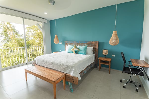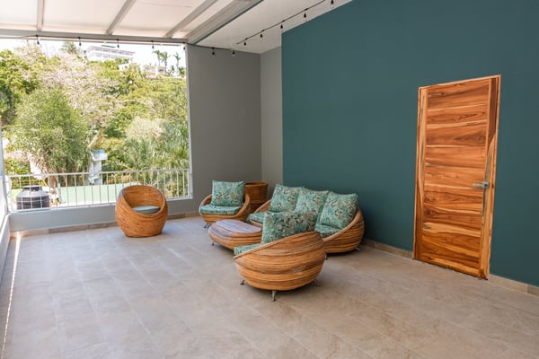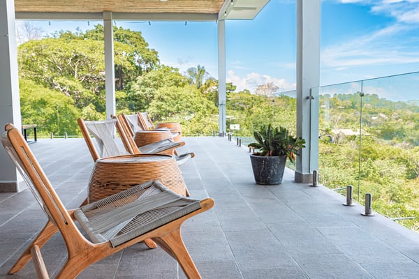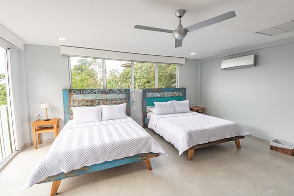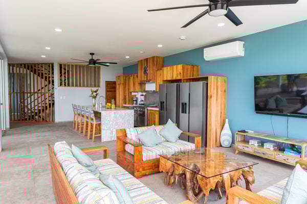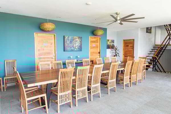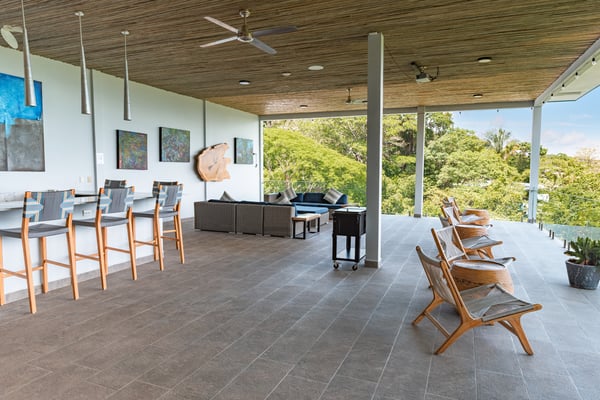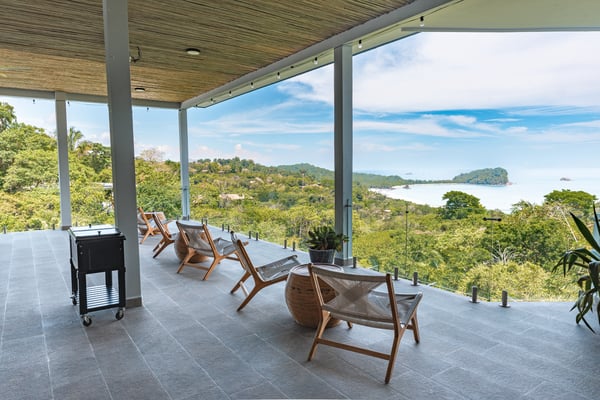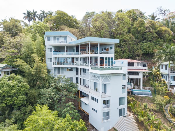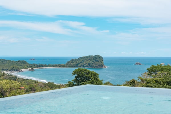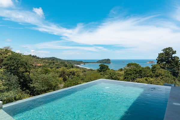 Located in the heart of Manuel Antonio, the impeccably detailed Villa is walkable to beaches, restaurants, a gym, a spa, and a yoga studio. It comfortably sleeps up to 34 people and blends the unexpected – contemporary and comfortable, sophisticated and social. The Villa features stunning panoramic views of the Pacific Ocean, Manuel Antonio National Park, and the surrounding jungle. Villa Costa Vida is perfect for small weddings, events, yoga retreats, or family reunions with 9 bedrooms, and 11 bathrooms including 7 bedrooms with en-suite bathrooms, a game room, and plenty of indoor and outdoor space. An infinity pool overlooks the ocean and the iconic point in Manuel Antonio National Park. A jungle trail on-site will take you to a seasonal waterfall. A solar system and backup generator ensure you are never without electricity or internet during electrical outages.