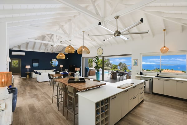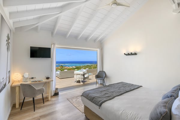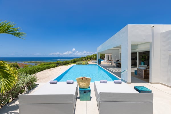 Sea view, tropical serenity, and effortless elegance: welcome to Villa Dulce. Perched on the peaceful heights of Hope Hill in Orient Bay, Villa Dulce is a haven of calm where time slows down, and the ocean becomes your daily backdrop. From the moment you arrive, the sweeping panoramic sea view invites you to breathe deeply, relax fully, and let go. Designed to host up to eight guests, the villa is ideal for families or groups of friends seeking both comfort and connection. The four bedrooms, each with a private bathroom and accessible from inside the house, offer comfort and privacy, while the common areas invite togetherness with an open kitchen, a bright living room, a spacious terrace, and an outdoor dining area. At the heart of the villa, the infinity pool blends seamlessly with the sea, offering long days of refreshing swims, sun-drenched naps, and pure relaxation facing the horizon. For added comfort, the pool is heated from October 15th to April 15th. Outside of these dates, pool heating is available on request for an additional fee per week. Just a short drive from the vibrant beach, restaurants, and boutiques of Orient Bay, Villa Dulce offers the best of both worlds — the peaceful charm of a private retreat, and easy access to the island’s lively energy. It’s a place where memories are made, stories are shared, and every day begins with an ocean view and ends under the stars.