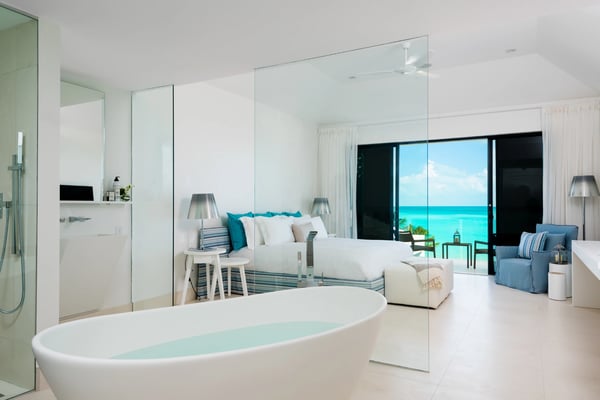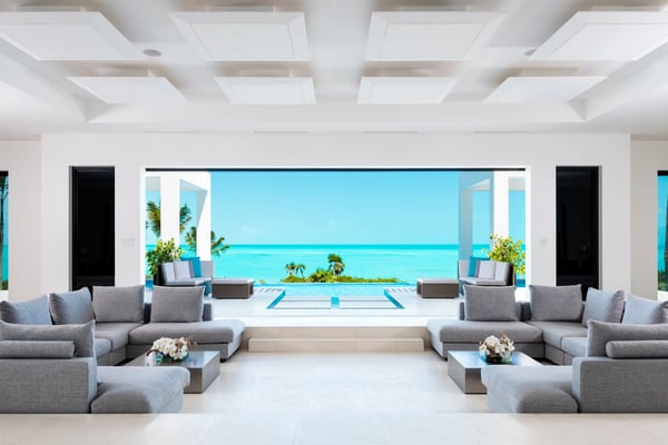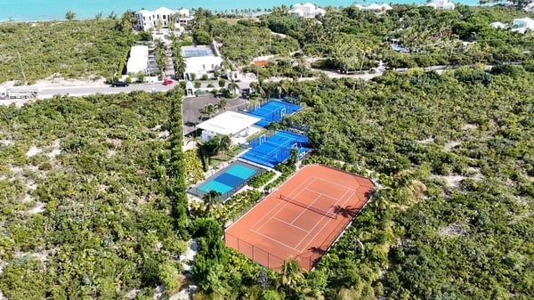 Nearby construction may result in noise disturbances. For further details on how this might affect your stay, please reach out to a Rental Escapes villa specialist. Construction is expected to last until January 2027. Tucked behind the pristine sand dunes of Long Bay Beach, Triton Luxury Villa sets a new benchmark for luxury in Turks & Caicos. Spanning over 7 acres of lush landscape, the estate offers 18,000 square feet of opulent beachfront living space. The villa features a total of 15 bedrooms, including an 8-bedroom main house, 4 standalone bungalows, and 3-bedroom staff quarters. Additionally, the villa now boasts a state-of-the-art sports center, complete with the only red clay tennis court and the only two padel courts in Turks and Caicos, as well as a pickleball court, offering guests top-tier facilities for fitness and recreation. The property features an outdoor movie theatre with fire pit, hot tub, 2 pools, cold plunge, sports center featuring private hard and clay tennis courts, pickleball and bocce ball courts, villa butler, chef, housekeeping and one of the nicest beachfronts on Long Bay. With endless unobstructed views of the world-famous turquoise waters of the Turks and Caicos Islands. Triton Luxury Villa sits on one of the world’s top beaches for kiteboarding. Known for its safe learning environment and ideal conditions, Long Bay Beach is an ideal location to learn kiteboarding. The majority of the kiteboarding takes place about 1 mile down the beach from Triton Villa. Named for the Greek god who was the messenger of the sea, Triton Villa is a private haven fit for an Olympian. Not only does this contemporary Turks and Caicos vacation rental boast a breathtaking setting on the white sands and turquoise waters of Long Bay Beach, but its bright, open living spaces enchant with their relaxed modern style.