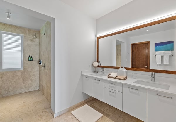 Enjoy sweeping views of the Atlantic Ocean or Caicos Bank from our Oceanview Suite. Conveniently located near amenities and perched in an elevated spot with beach access, this suite features double sliding glass doors that open to a covered terrace. Inside, you’ll find a small kitchenette with a wet bar and a bathroom with a large tub, oversized walk-in shower, water closet, and double vanity.
