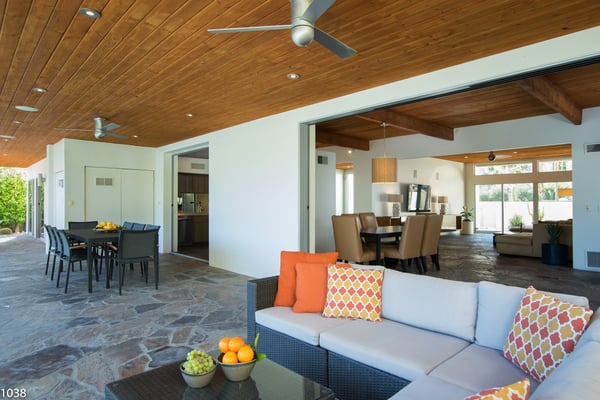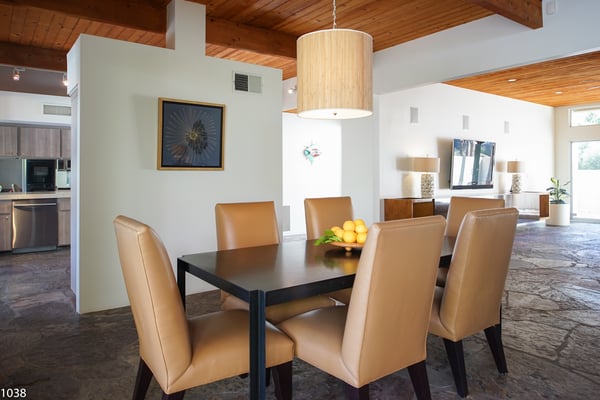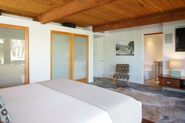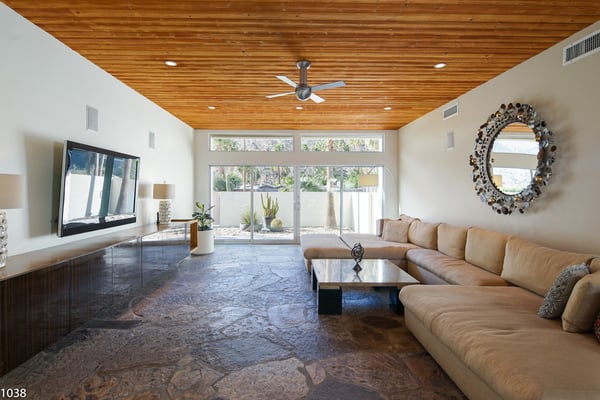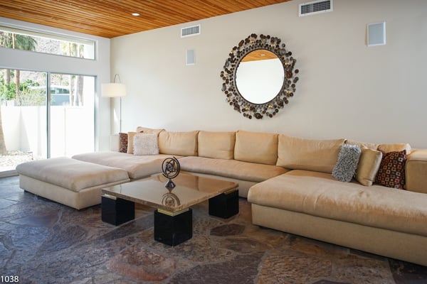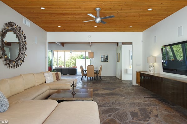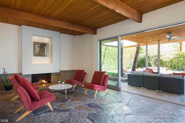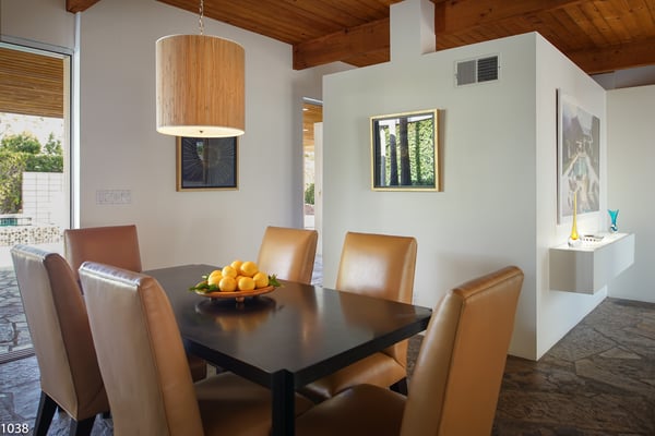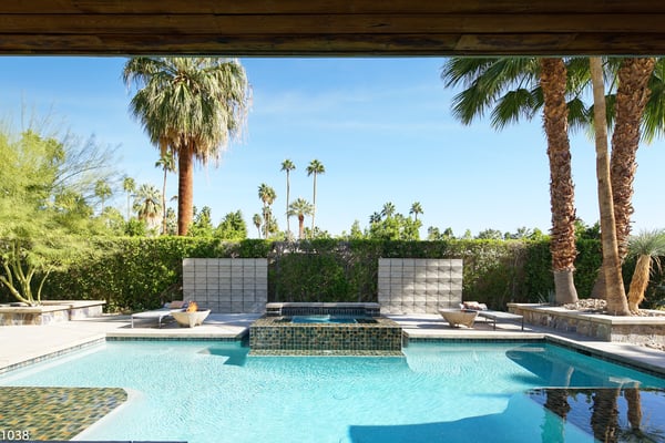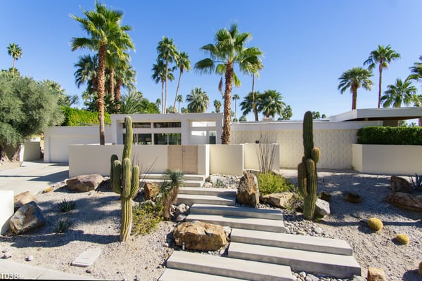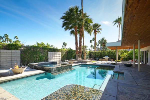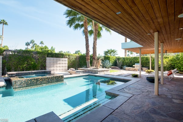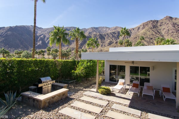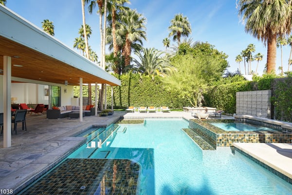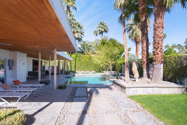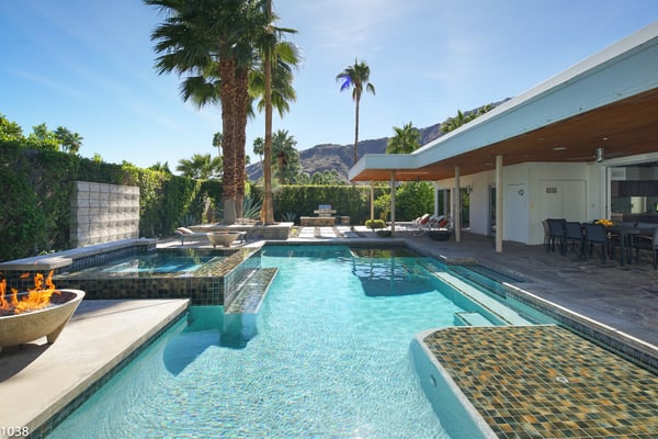Located in Vista Las Palmas, this original mid-century home designed by William Krisel and Dan Palmer, AIA for the Alexander Development is updated for living today. In the 1950s, legendary Mario Lanza reportedly was a frequent guest in this Las Palmas home, which was also rumoured to have often entertained Frank Sinatra and neighbouring Nat King Cole. Today, this four-bedroom residence with 3,000 square feet of indoor living, integrated with a spacious outdoor lifestyle, is a new-century seductive oasis. There are four stylish bedrooms, two of which are primary suites with large plasma TVs. The home also features a telescoping door from the great room to explore the night sky, and a media room with a home theatre and surround sound. Guests have access to the modern and quaint kitchen with a ceiling-to-floor sliding door to outdoor dining. In addition to the indoor highlights, the home also has a secluded, private backyard that offers a saline hot tub and pool with a tanning shelf. A covered poolside lanai creates a spacious outdoor lounging and dining area with ceiling fans and an extensive misting system for year-round comfort. Lounge in the spacious backyard around a refreshing pool, spa, and fire pits, taking in the spectacular mountain views and modern desert landscape. Permit #1038