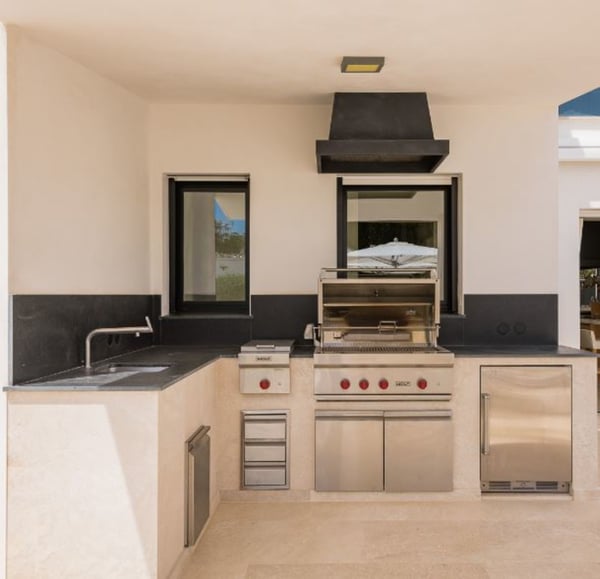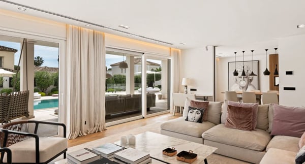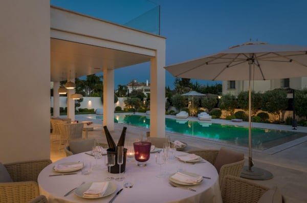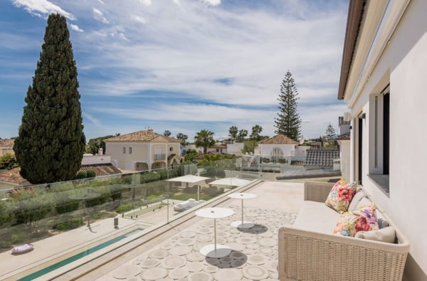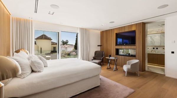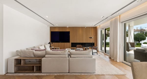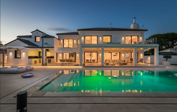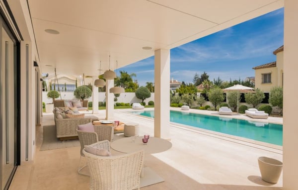 Thanks to its enviable situation in Marbella's most sought-after area, this contemporary property has been designed for a luxury holiday appealing to families wishing to be close to all amenities: beaches, beach bars, shops and trendy restaurants along the acclaimed Golden Mile. The villa is equipped with state-of-the-art fixtures and ultra-contemporary furnishings, adding style and comfort to your stay. This exceptional five-bedroom luxury villa sits in Marbella's exclusive Golden Mile, close to shops, restaurants and the beach. Fully enclosed manicured garden comprising trees, shrubs and lawn areas. Private pool (with Roman steps), large sunbathing area and day beds with parasols. You will find covered terraces on two floors, al fresco dining, a summer kitchen, gas barbeque and hob, fridge, sink with tap. Private parking for two cars with an automate gate.